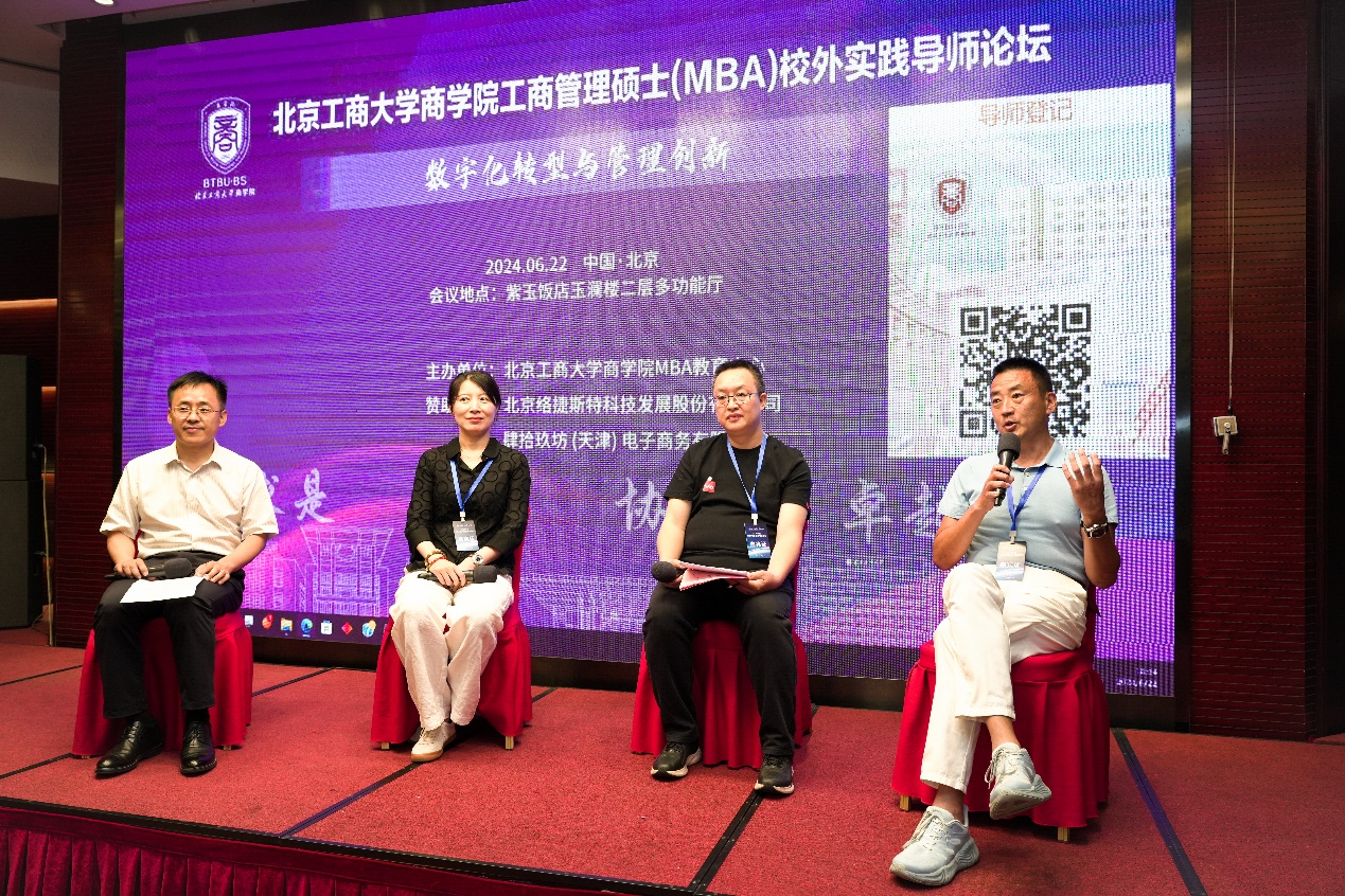 在圓桌討論環(huán)節(jié),MBA教育中心副主任王長(zhǎng)斌與三位業(yè)界資深專家現(xiàn)場(chǎng)互動(dòng)交流,共同探討了數(shù)字經(jīng)濟(jì)時(shí)代工商管理人才的培養(yǎng)之道。華興控股華興基金HRD兼總助晏莉從發(fā)展專精特新型中小企業(yè)的國(guó)策出發(fā),提出當(dāng)今的工商管理人才應(yīng)文武兼?zhèn)?,文是指社交技能和溝通能力,武是指?shù)字素養(yǎng)與技術(shù)應(yīng)用能力。右來(lái)了科技商品運(yùn)營(yíng)中心總經(jīng)理唐依軍指出在數(shù)字經(jīng)濟(jì)時(shí)代,培養(yǎng)管理人才是一項(xiàng)系統(tǒng)工程,需要企業(yè)、教育機(jī)構(gòu)及社會(huì)各界共同努力,構(gòu)建一個(gè)開(kāi)放、協(xié)作、持續(xù)學(xué)習(xí)的生態(tài)環(huán)境。春光里資本集團(tuán)合伙人劉維指出MBA側(cè)重管理能力培養(yǎng),為此在教育環(huán)節(jié)中要讓學(xué)員像演員體驗(yàn)生活一樣多接觸各色人等,校外導(dǎo)師可以在這方面為學(xué)生提供交流互動(dòng)和沉浸體驗(yàn)的機(jī)會(huì)。