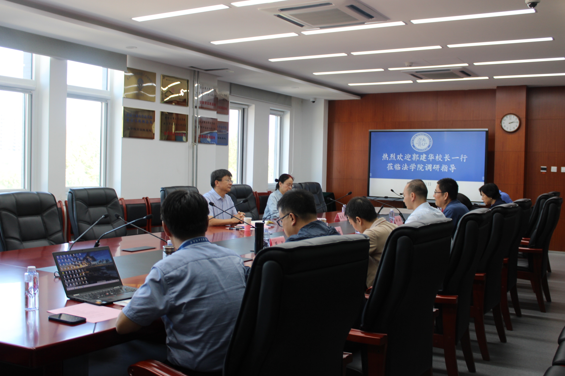 9月21日,學校黨委副書記、校長郭建華到法學院調研,就學院發展和學科建設等問題與學院領導班子成員和教師代表進行交流座談,學校辦公室主任王曉華陪同調研。座談由法學院黨委書記馬韜光主持。