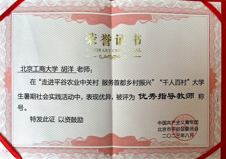 近日,我校在“走進平谷農業中關村 服務首都鄉村振興”首都高校“千人百村”大學生暑期社會實踐活動中榮獲“優秀組織獎”,由計算機與人工智能學院五名師生組成的社會實踐鄉村振興小分隊獲評“發展建議優秀團隊獎”,實踐團帶隊老師胡洋獲評“優秀指導教師”。