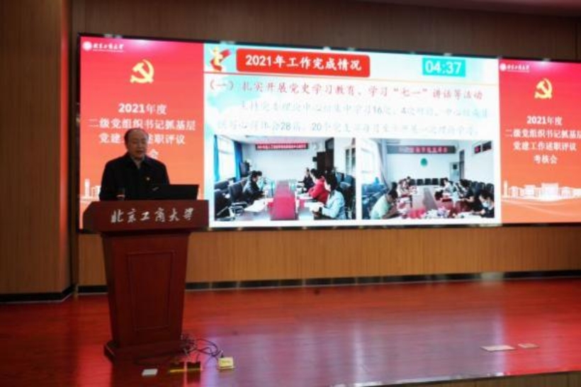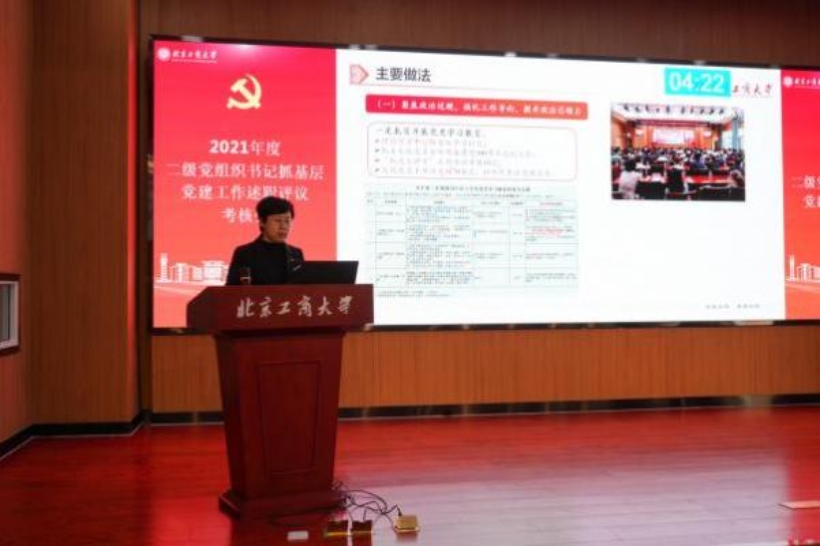 在述職評(píng)議考核會(huì)上,作為本單位抓基層黨建工作第一責(zé)任人,現(xiàn)場(chǎng)述職的二級(jí)黨組織書(shū)記以文稿演示的形式,匯報(bào)展示了2021年抓基層黨建工作的主要做法、存在問(wèn)題和下一步舉措。