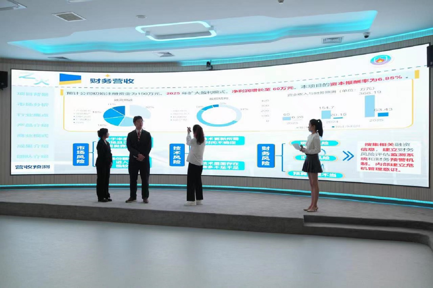 此次大賽共112支團隊報名參賽,經過一個多月的初賽及復賽,最終選拔出10支隊伍參加決賽。決賽過程緊張而激烈,同學展示出了創新創業的激情與活力。“微風干燥”團隊自主研發中小型智能家商兩用果蔬微波干燥機,跟隨政策引領,助力鄉村振興。“之火”團隊打造了一款高精度、高范圍、高量程的熱成像火情預報警系統,具有精準預測、及時報警、聯網分析及迅速滅火的優勢。“凈解之材”團隊自主研發新型可降解材料改性技術,旨在助推“雙碳”目標。“肥常靠譜”團隊自主研發緩釋多功能復合益生菌劑,助力“減肥減藥”。“折子語”團隊自主研發小語種端到端聲學模型,旨在爭做小語種自動語音識別先行者。“夢想守護者”團隊,旨在打造一個面向鄉村兒童的多元化素質教育體系,助推鄉村素質教育行業的發展。路演過程精彩紛呈,團隊同學在臺上大展風采,親友團們在臺下積極現場互動,還有些團隊帶來了自己的產品讓現場的老師同學們品鑒。
