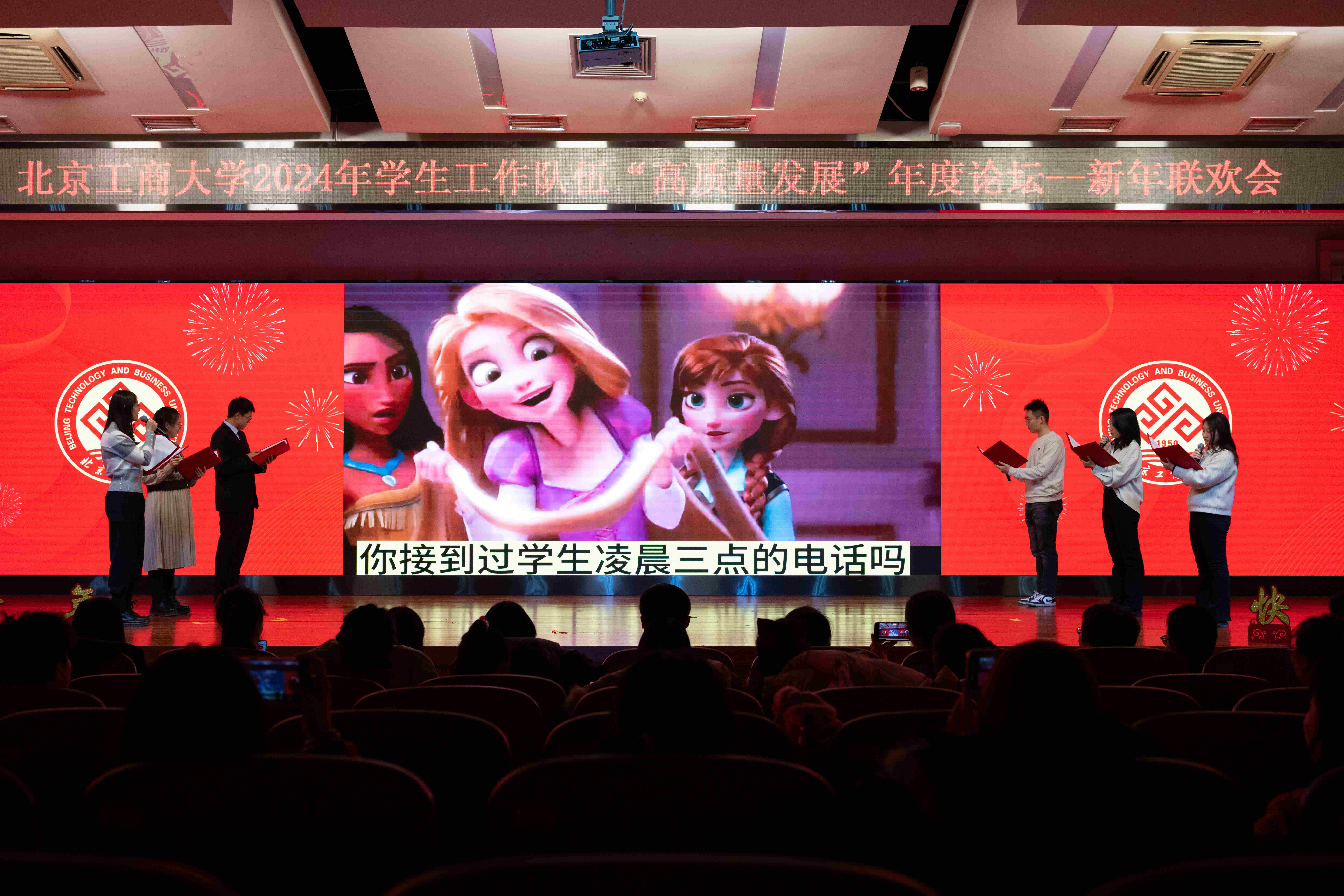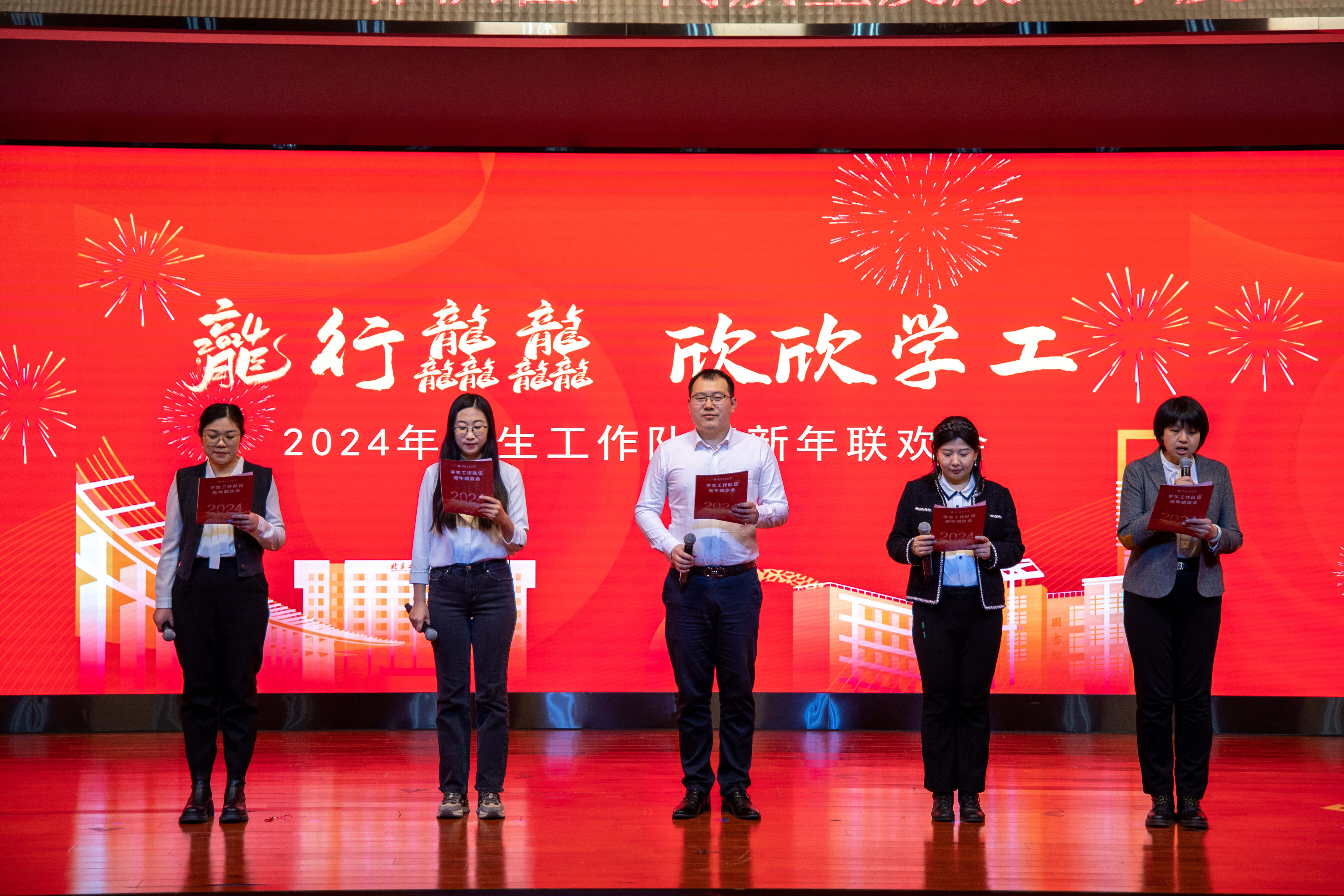 聯歡會以“龍行龘龘 欣欣學工”為主題,匯聚了由學工職能部門以及各學院精心編排的節目,輔導員老師們認真準備、發揮所長,通過歌曲、舞蹈、朗誦、配音等形式,將歡樂感人的氛圍推向一個又一個高潮,傾情展現出一場精彩紛呈的視聽盛宴。