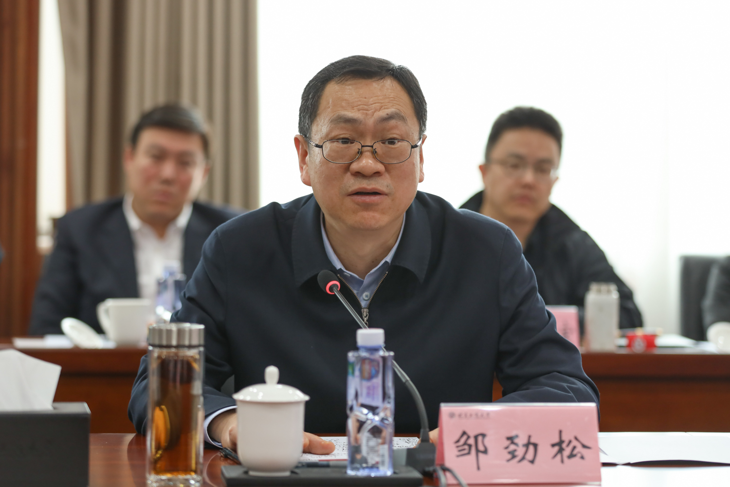 黃先開、孫寶國對鄒勁松一行的到來表示歡迎,對房山區委、區政府長期以來為學校提供的支持和幫助表示感謝。黃先開指出,良鄉主校區已成為推動學校“雙一流”創建的重要支撐,房山區是我校參與校地合作與人才深度融合的首選區域。學校將充分發揮學科優勢和人才優勢,大力支持科研成果率先在房山區落地轉化,邀請杰出校友企業家在房山區投資興業,為推動房山經濟社會高質量發展貢獻力量。孫寶國對學校整體情況、事業發展成就、區校合作進展、學校近遠期發展目標等進行了介紹,并對良鄉主校區下一步規劃建設進行了展望。他談到,北京工商大學作為北京市重點建設的高水平研究型大學,全面貫徹黨的教育方針,始終面向國家、北京市和行業需求培養高質量創新人才,目前已在良鄉主校區建成“本碩博”一體化培養模式,學校正步入高水平研究型大學建設發展快車道。學校的快速高質量發展將與“一區一城”新房山高質量發展同頻共振、同向而行,在校地融合、合作共贏中賦能房山區更快更好發展。