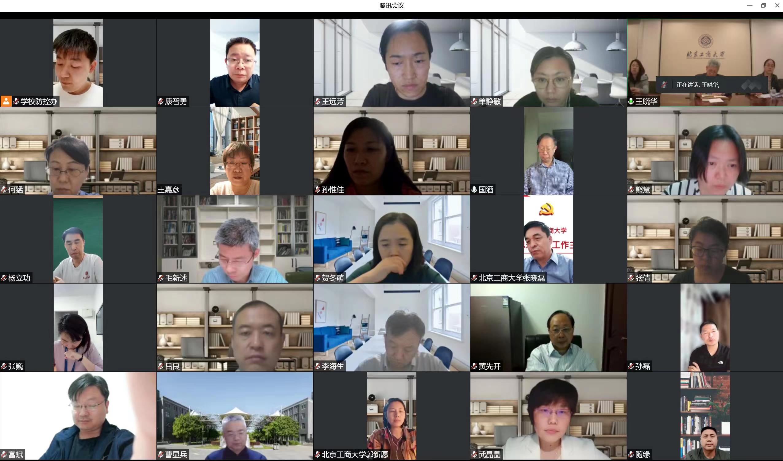 學校辦公室主任王曉華傳達了北京市當日防控調度會和教育系統防控工作視頻會議精神和要點,結合學校臨時管控期間工作,匯報了阜成路校區在校師生核酸檢測情況,通報了“五一”假期核酸檢測上級最新通知要求,并就實驗室開放、良鄉主校區管理等情況進行了說明。