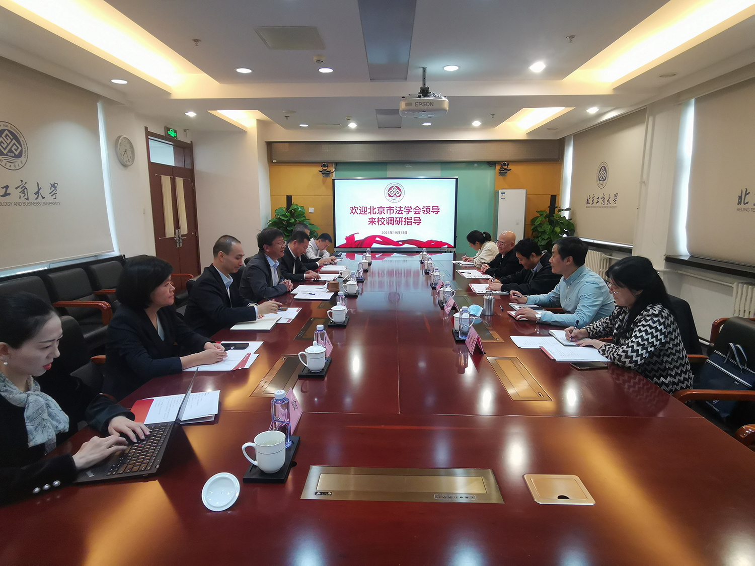郭旭升對學校熱情接待表示感謝,他介紹了市法學會的性質和功能,表示與北京工商大學已有良好的合作基礎,今后在首都法治人才隊伍建設方面,數字治理以及服務首都法治發展等方面,都需要將雙方的合作推向更深更實,滿足未來首都發展的法治需求。