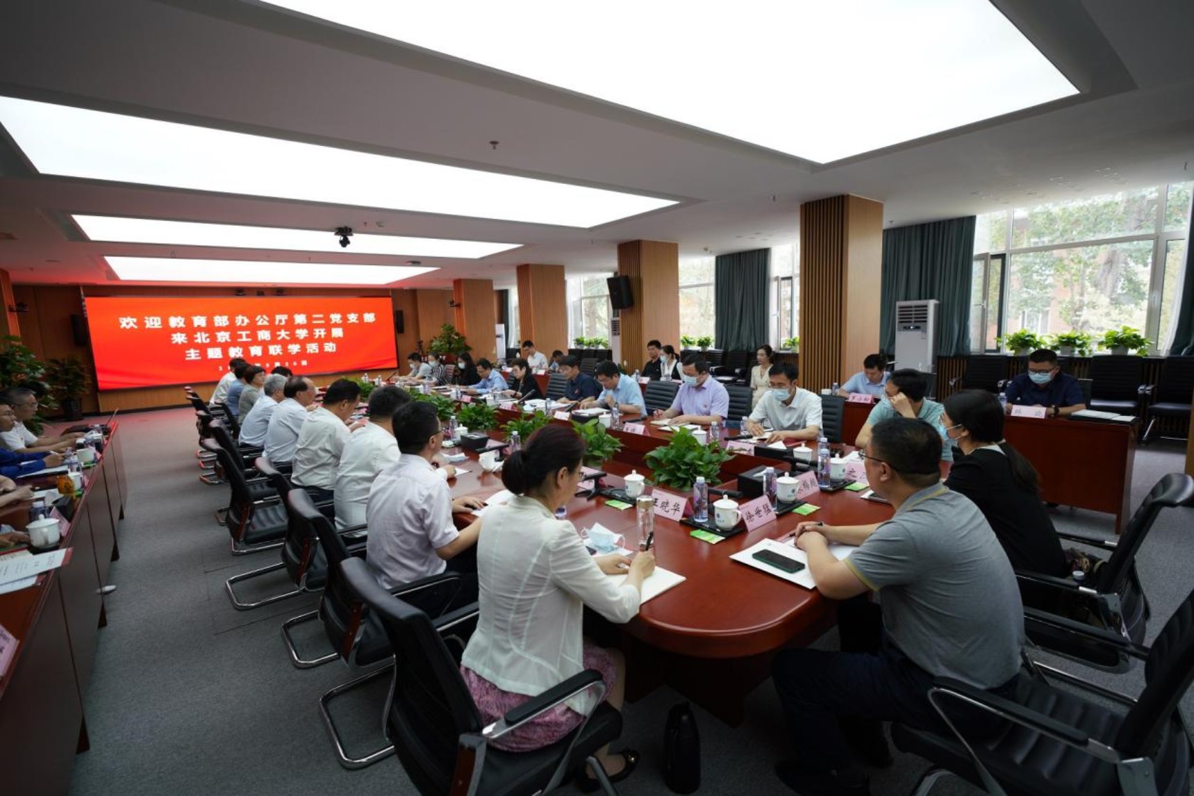 5月26日,為推動學習貫徹習近平新時代中國特色社會主義思想主題教育進一步走深走實、見行見效,教育部辦公廳第二黨支部來學校開展主題教育聯學活動。教育部辦公廳副主任張萍、蘇大林,學校黨委書記黃先開,黨委副書記李中奇,黨委常委、副校長鄭文紅、劉敏華、左敏和辦公廳、學校40余名黨員干部參加有關活動。