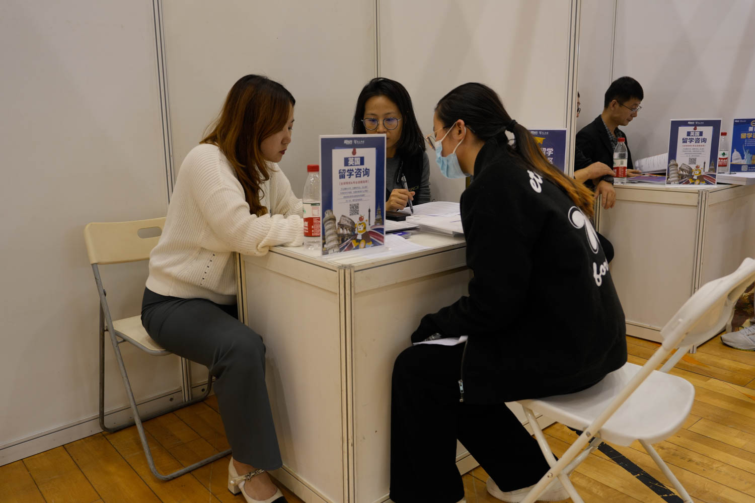 雙選會現場,招生就業處特設指導服務專區。在AI就業指導專區,畢業生可以免費與AI面試官模擬真實面試的場景,通過3-5分鐘的答題環節,從職業能力、個人特質、面試狀態等各方面進行智能評估,并提供面試報告及面試指導;畢業生現場體驗感受良好。在簡歷指導服務專區,學校及北京市房山區人力資源和社會保障局共同為畢業生提供一對一簡歷指導,引導畢業生樹立正確的就業觀,助力畢業生順利求職。在留學咨詢專區,學校特邀新東方前途出國專家到場給同學們進行留學規劃與指導,幫助畢業生了解申請流程,加強競爭力。在政策咨詢服務專區,北京市房山區人力資源和社會保障局為畢業生提供檔案、社保等專題政策宣傳,幫助畢業生了解政策,用好政策,滿足畢業生多方面需求。