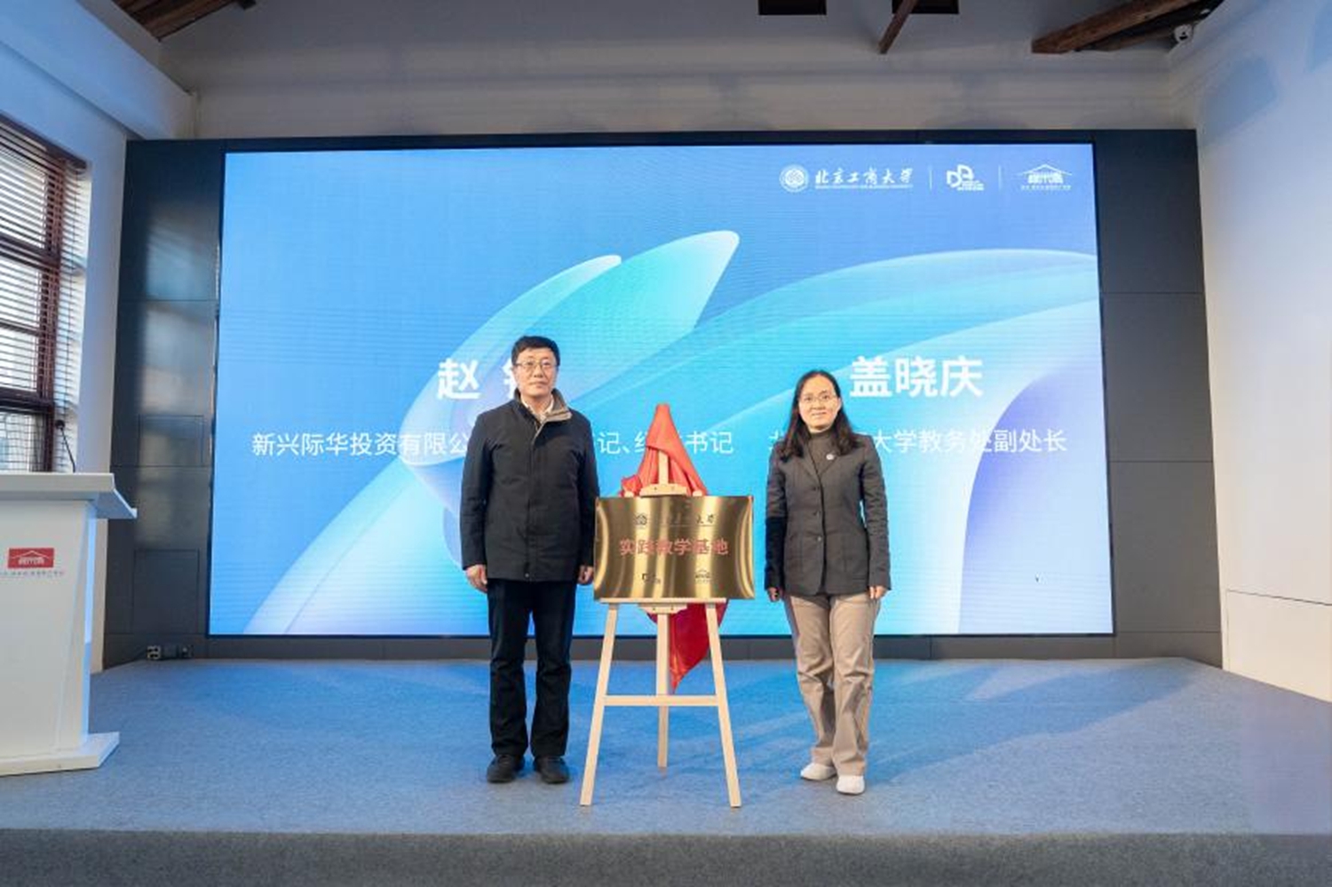 學(xué)校教務(wù)處副處長(zhǎng)蓋曉慶與新興際華投資有限公司黨委副書記、紀(jì)委書記趙銘共同為實(shí)習(xí)實(shí)踐基地揭牌。揭牌儀式后,校企雙方圍繞“北京工商大學(xué)服務(wù)行業(yè)及首都發(fā)展”開展座談交流。