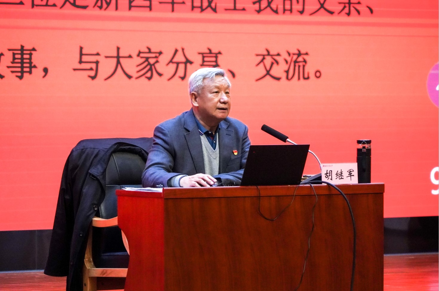 11月16日,北京新四軍研究會副會長、北京鐵軍文化傳播中心秘書長胡繼軍以“建黨百年鑄輝煌,共產(chǎn)黨員是棟梁”為題,從共產(chǎn)黨人的初心使命講起,講述了新四軍軍長葉挺將軍以及胡繼軍的父親、母親、岳父三位新四軍戰(zhàn)士在戰(zhàn)爭年代堅定信念跟黨走、英勇作戰(zhàn)、不怕犧牲、無私奉獻的故事,謳歌了中國共產(chǎn)黨黨員和人民軍隊堅定的理想信念、崇高的思想境界和優(yōu)秀的道德品質。