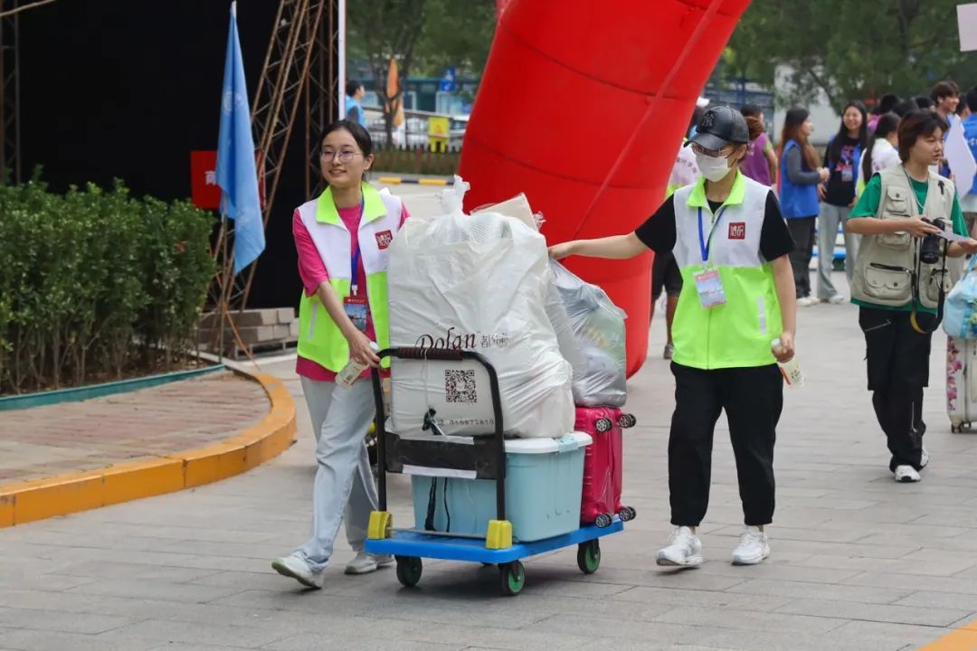 上午7時(shí),熱烈的紅色拱門和飄揚(yáng)的學(xué)院旗幟在初升的太陽下格外耀眼。“同學(xué),請(qǐng)來這邊!”迎新志愿者們親切的問候,是初來乍到的萌新們收到的第一份溫暖。身穿彩色馬甲的他們,由校門至寢室,從超市到食堂,用忙碌的身影“鋪”出了一道絢麗的路線。穿梭于人群之中,志愿者們?yōu)樾律鹨芍嘎罚徇\(yùn)行李。簽到確認(rèn),領(lǐng)取資料,一切都高效而有序地進(jìn)行著。