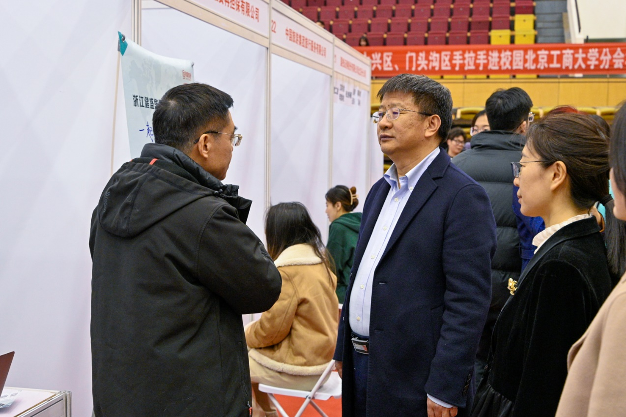 此次雙選會由學校招生就業處與北京高校大學生就業創業指導中心聯合主辦,東城區、豐臺區、大興區、門頭溝區人社局作為協作單位推薦區內優秀用人單位參會。房山區人社局局長隗合慶蒞臨現場指導,表示將繼續給予學校就業工作大力支持,共同助力高校畢業生高質量就業。