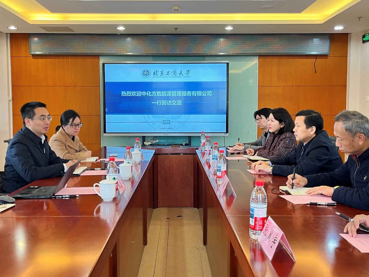 孟曉曦介紹了公司的背景與發展重點方向。他表示,中化方勝能源管理服務有限公司一貫重視高校在人才培養中的作用,北京工商大學學科專業特色鮮明,區位優勢突出,與公司業務需求高度貼近,雙方未來合作空間巨大。接下來,公司將安排專人與學校對接,研究確定具體合作事項。