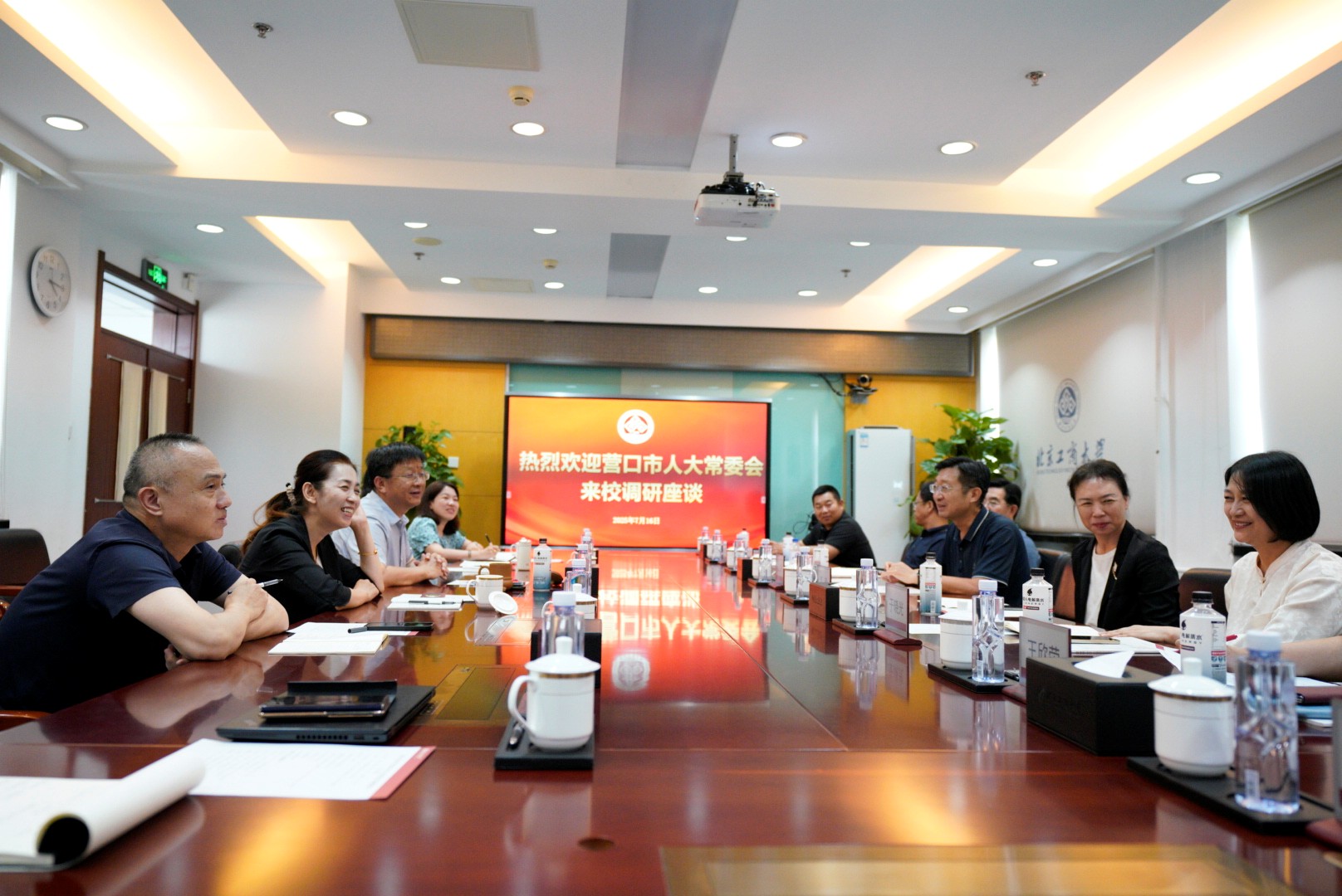 7月16日,營口市人大常委會黨組書記、主任史衛東一行來校調研座談。黨委副書記、校長郭建華,黨委常委、副校長徐丹丹出席座談會。