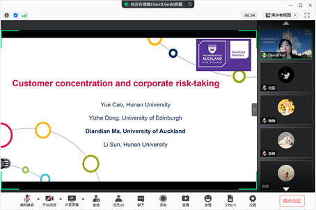 馬點點博士作題為《Customer concentration and corporate risk-taking》的線上學術(shù)報告。馬點點表示,客戶集中度對公司的風險承擔行為存在顯著影響,對于市場化程度較高地區(qū)或競爭性行業(yè)的企業(yè)、市場份額少或創(chuàng)新能力弱的企業(yè)、民營企業(yè)以及缺少主業(yè)的國有企業(yè)的而言,較高的客戶集中度能夠顯著降低公司風險承擔。同時還發(fā)現(xiàn),客戶集中度與公司風險承擔之間存在顯著的閾值效應,只有當客戶集中度達到一定程度后,企業(yè)才會采取預防措施,以規(guī)避相關風險。