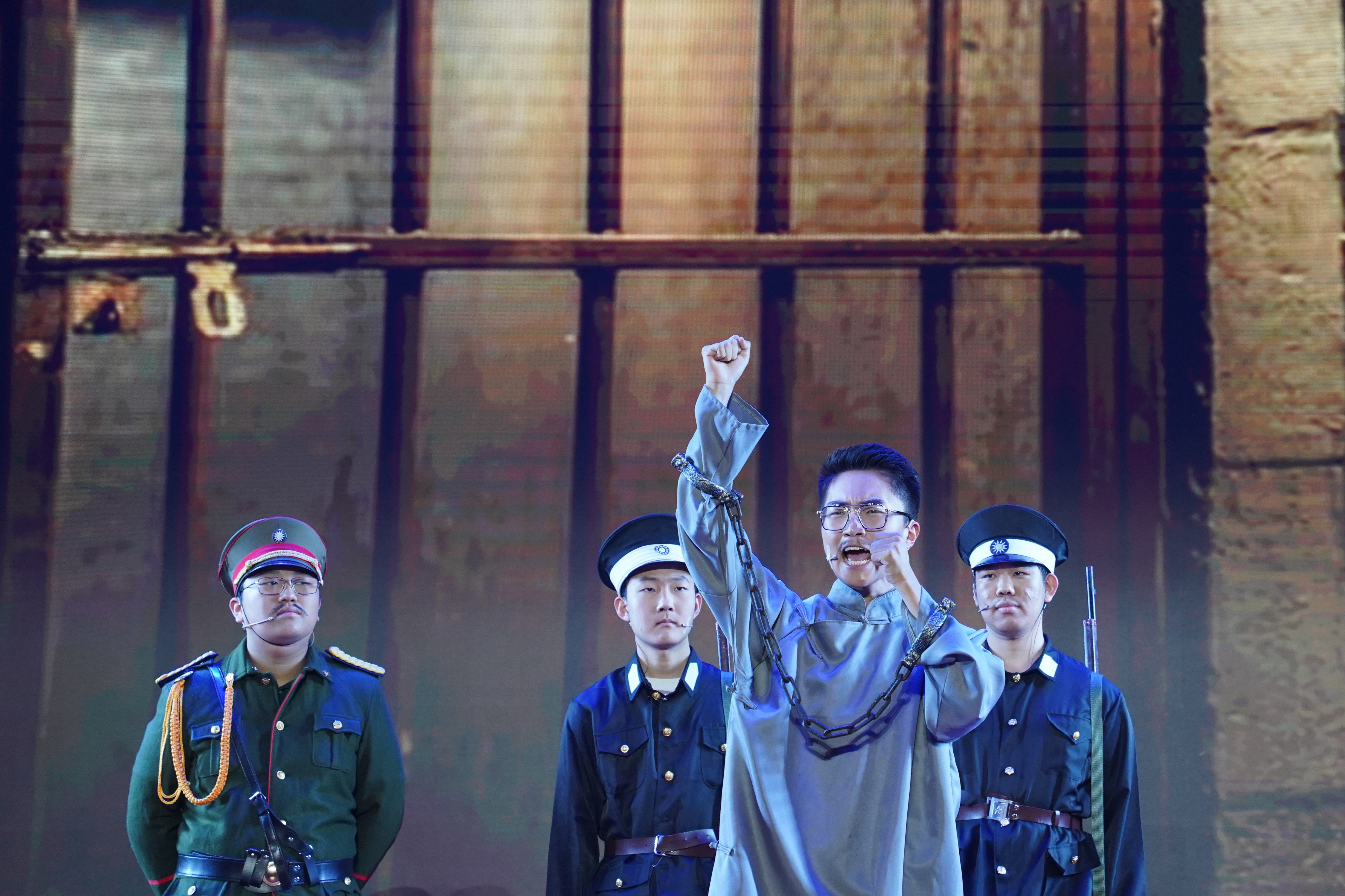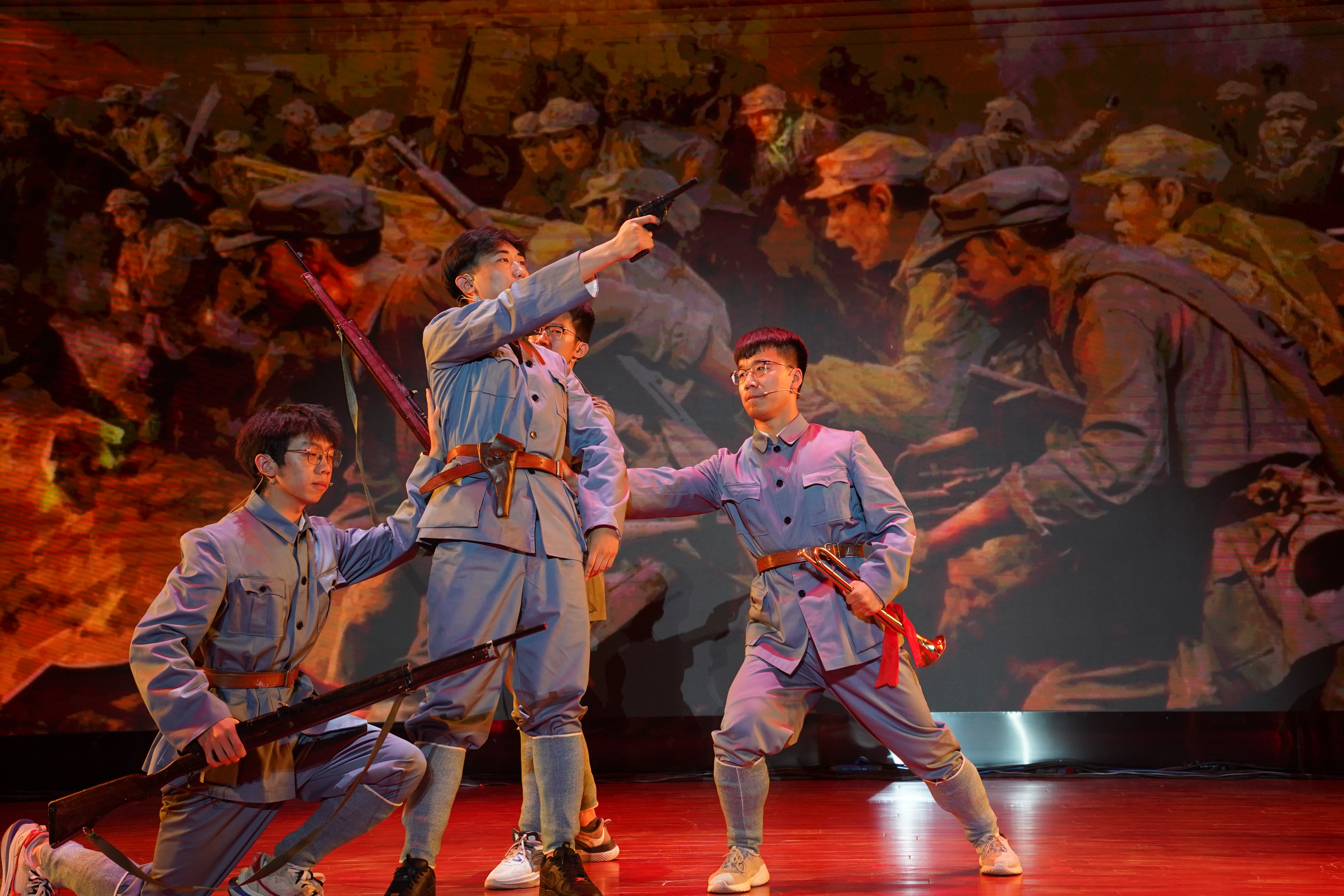 “沒有共產(chǎn)黨就沒有新中國。”在清脆嘹亮的童聲中,本次活動拉開了序幕,參與表演的師生和現(xiàn)場觀眾揮舞著黨旗共同合唱《沒有共產(chǎn)黨就沒有新中國》,表達(dá)了對建黨百年的深深祝福;外國語學(xué)院《青春》通過激情的演講和優(yōu)美的歌聲唱出“青春之國家,青春之民族”的號召;計算機(jī)學(xué)院《謀中國民族之解放》展示了中國最早的馬克思主義者和共產(chǎn)主義者,中國共產(chǎn)黨的主要創(chuàng)始人之一李大釗先生被捕后,面對反動軍閥迫害從容不迫、大義凜然的英雄氣概;商學(xué)院《活出自己的青春》,講述了我國最早期共產(chǎn)黨員之一的夏明翰同志,在國家危亡之際義無反顧地投身革命,英勇就義;經(jīng)濟(jì)學(xué)院《革命伉儷的訣別信》讓在場師生感受到了革命伉儷陳覺和趙云霄同志的革命愛情。