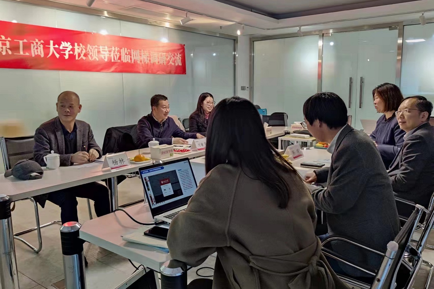 北京網梯科技發展有限公司副總裁陳健、總經理郭蓓帶領人力資源團隊詳細介紹了公司的發展歷程、業務開展、專利榮譽和招聘架構等情況,著重介紹了公司在北京工商大學歷年的招聘情況和人才發展情況,并就北工商學子在公司的工作表現給予高度評價。招生就業處處長楊林匯報了畢業生生源情況、就業情況及近5年發展情況。