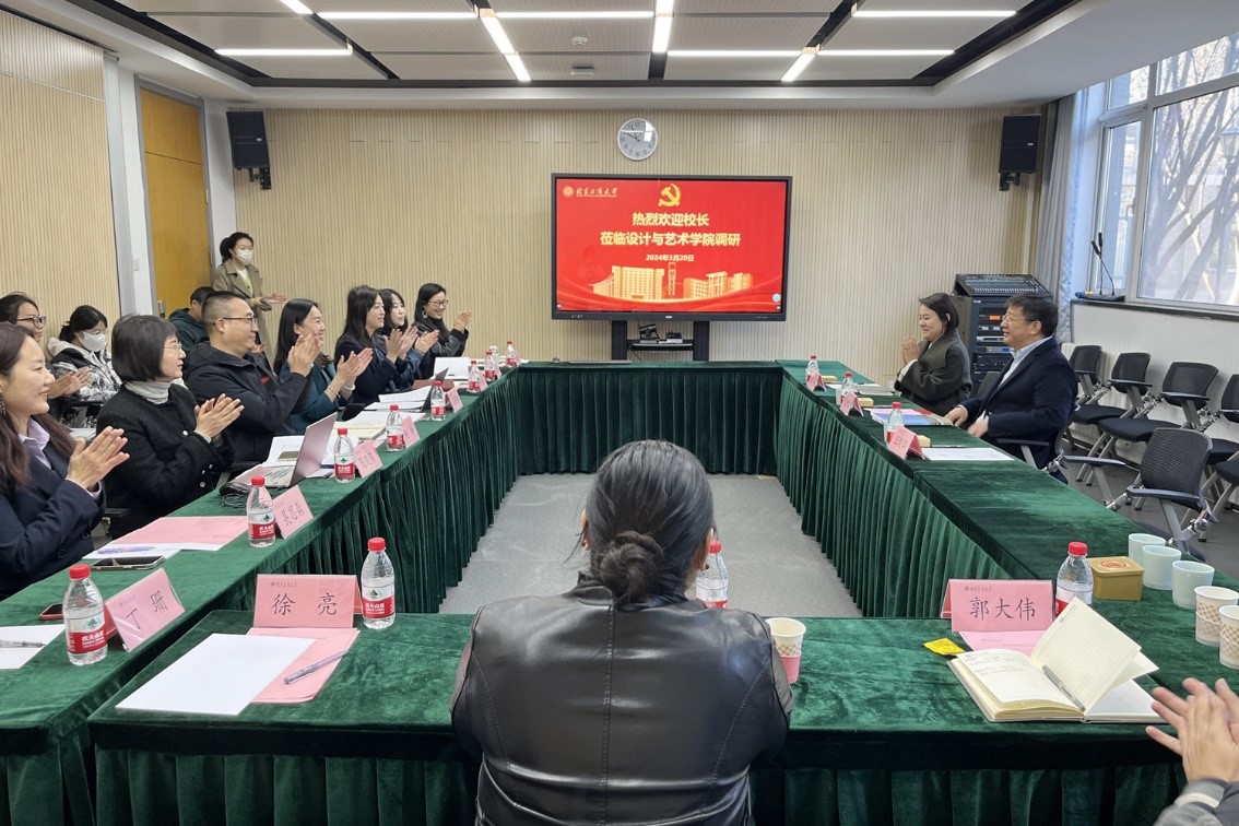 3月20日,郭建華到設計與藝術學院調研,觀看了學院課程思政實踐成果案例系列短視頻。學院黨委書記王海偉以《凝心聚力促發展 踔厲奮發譜新篇——建設高質量特色教學型學院》為題,就學院基本情況、工作思路和目標、特色重點工作、存在的問題與工作思考等進行全面匯報。學院黨委副書記楊帥,副院長劉紅菊、陳曉環分別就教育教學、人才培養、科學研究、社會服務、師資隊伍、學生工作建設等方面情況進行了匯報。教師代表結合自身學習、工作和生活實際,就崗位聘任、教育教學中遇到的困難與困惑進行了交流發言。