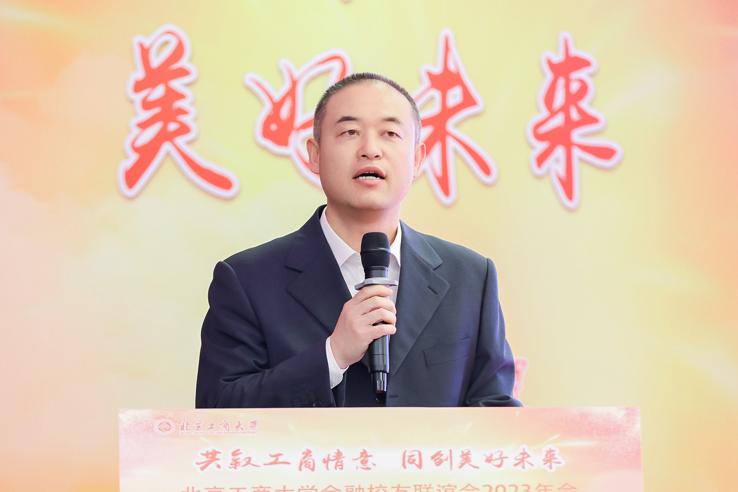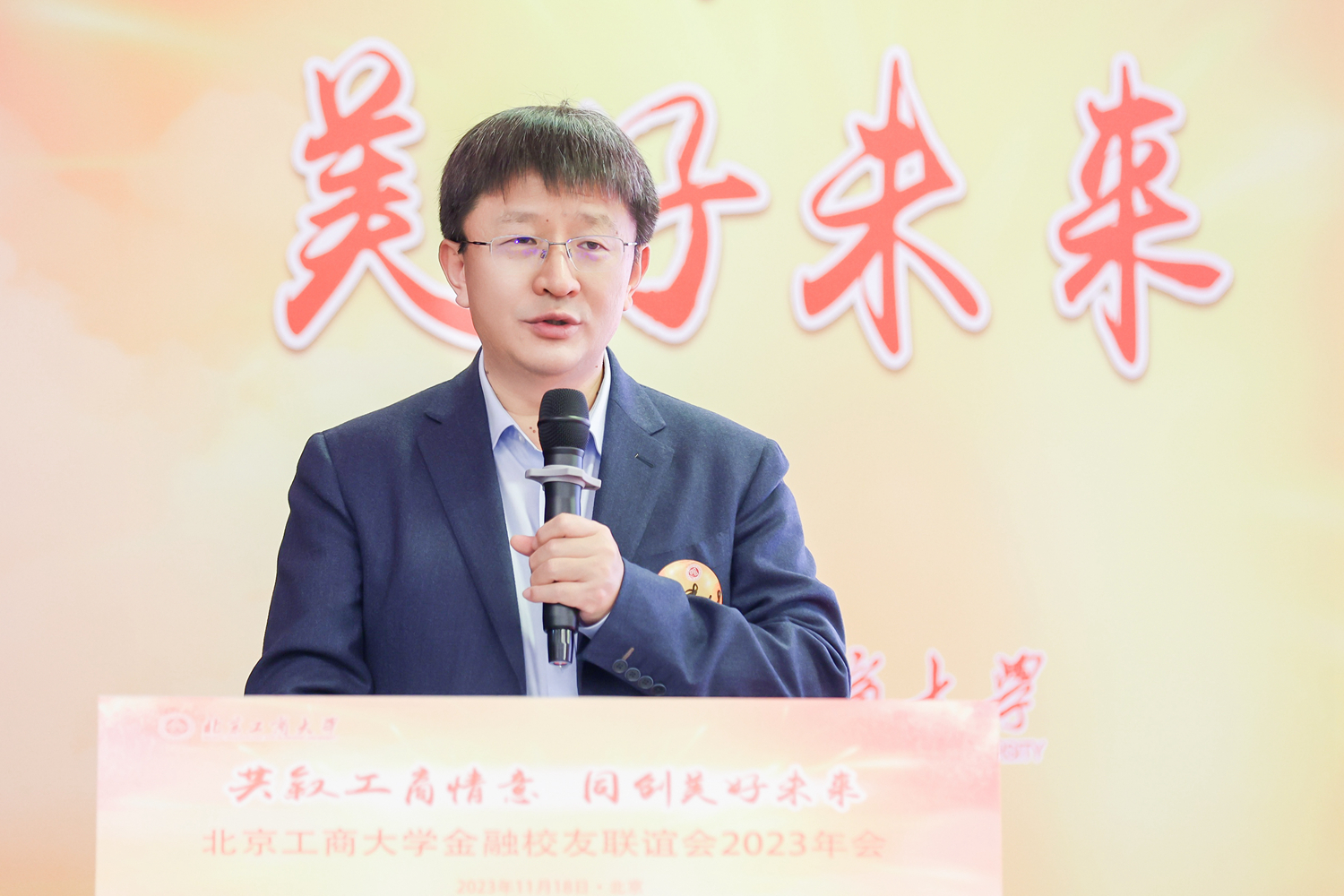 郭建華代表學校向年會的召開表示熱烈的祝賀,向長期以來關心、支持學校發(fā)展建設的各界校友表示誠摯的感謝。他談到,金融校友聯(lián)誼會自2016年成立以來,匯聚學校金融與投資相關領域校友,在團結(jié)校友、搭建平臺、整合資源、促進合作等方面發(fā)揮了積極的作用。不少校友百忙之中回到學校,參加學術論壇、就業(yè)指導、企業(yè)招聘、助學捐贈、課程建設等活動,為學校的發(fā)展建設出謀劃策、提供助力。當前,學校正在緊緊圍繞建設特色鮮明的高水平研究型大學這一主線,全面落實良鄉(xiāng)主校區(qū)和阜成路校區(qū)兩校區(qū)發(fā)展規(guī)劃,加快推進轉(zhuǎn)型發(fā)展和學部改革,歡迎并期待校友們積極參與到學校的各項發(fā)展建設中來,學校也將著力為校友們的個人事業(yè)發(fā)展提供更加堅強有力的服務與支持。他表示,學校高度重視金融校友聯(lián)誼會的發(fā)展,期待在新一屆理事會的領導下,在學校校友會的支持下,金融校友聯(lián)誼會繼續(xù)搭建校友聯(lián)絡感情、共享資源的平臺,創(chuàng)新校友深度交流、蓄力提升的方式,培養(yǎng)校友情系母校、報效國家的理念,發(fā)揮行業(yè)集聚人才、貢獻智慧的作用,走出一條建設一流行業(yè)校友會的新路,為中國式現(xiàn)代化建設提供北工商方案,貢獻北工商力量。