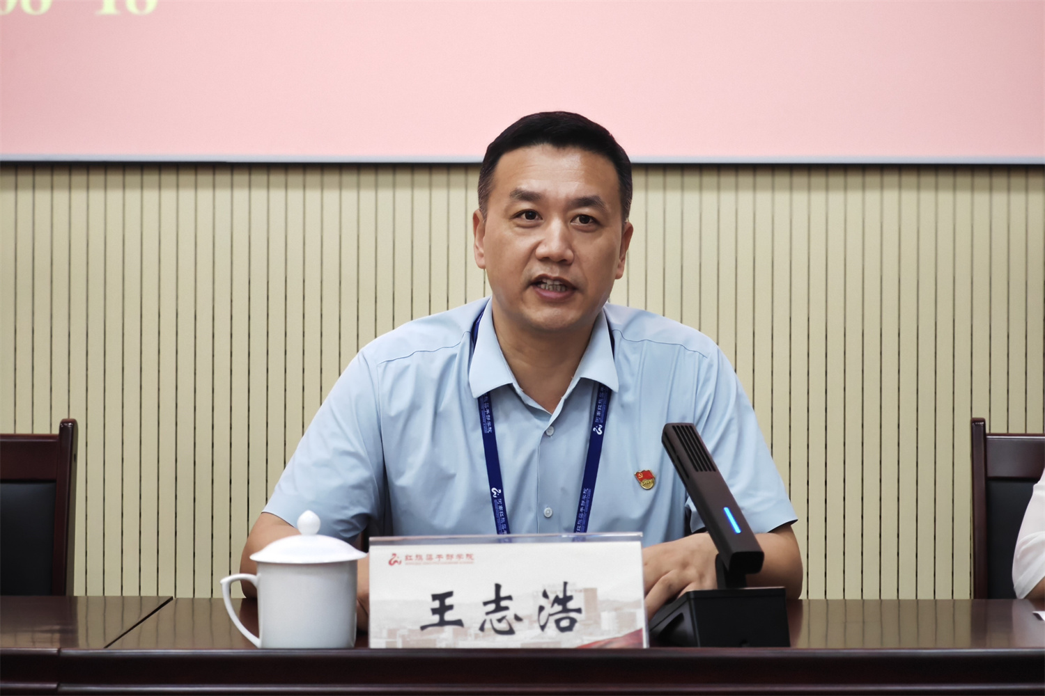 王志浩致歡迎辭。他對北京工商大學參訓學員表示熱烈歡迎,全面介紹了安陽市的歷史沿革、人文底蘊、區位優勢與經濟發展現狀,并結合紅旗渠干部學院的建校歷程生動闡釋了紅旗渠精神內涵。