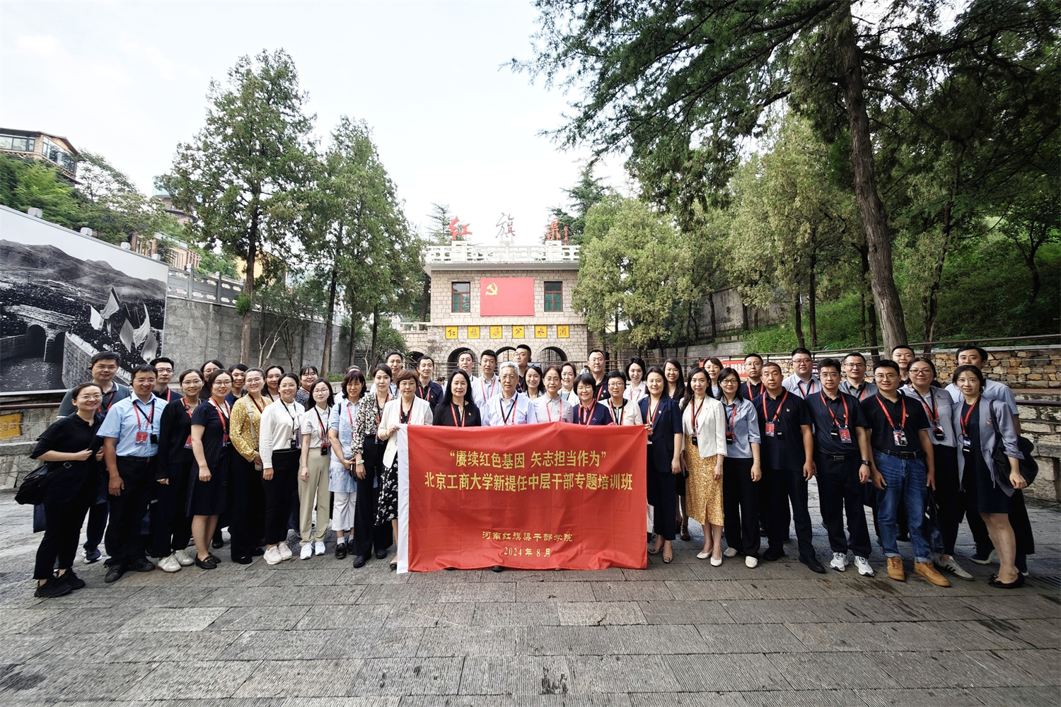 為深入學習貫徹習近平新時代中國特色社會主義思想和黨的二十大精神,深刻領會黨的二十屆三中全會精神,不斷提升新提任中層干部推動高質量發展本領、服務群眾本領、防范化解風險本領,8月18日至21日,學校在紅旗渠干部學院開展“賡續紅色基因,矢志擔當作為”新提任中層干部專題培訓。本次培訓由學校黨委副書記李中奇、宋曉欣帶隊,相關部門負責人以及新提任中層干部等共46人參加。