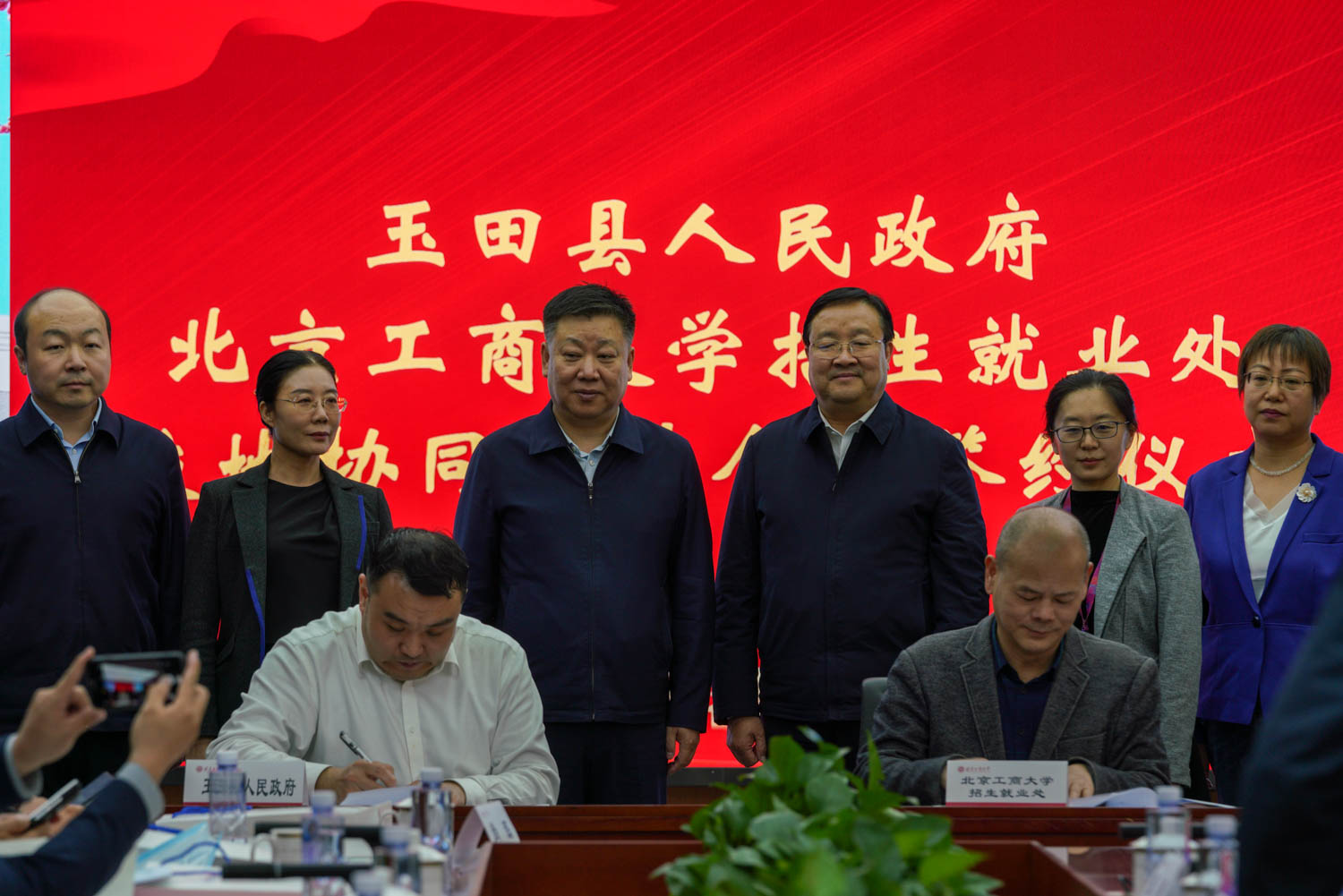 本次座談達成戰略合作,北京工商大學招生就業處與玉田縣人民政府就校地協同人才合作簽訂框架協議。