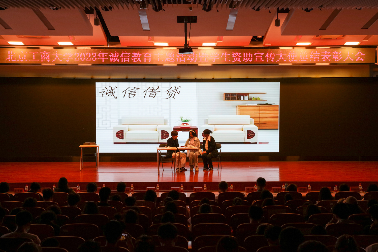 5月31日下午,北京工商大學2023年誠信教育主題活動暨學生資助宣傳大使總結表彰大會在良鄉主校區舉行。校黨委副書記李中奇,紀檢監察綜合室主任富斌,學生處處長呂良、副處長許峰,校團委副書記馬思瀟,各本科生學院黨委(黨總支)副書記、輔導員及學生代表參加會議。
