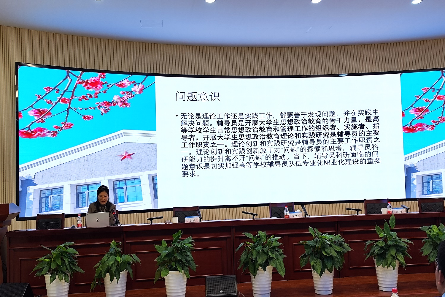 趙春麗教授以《高校輔導員成功申報課題的“三力”與“三氣”》為題,從學校發展與輔導員個人發展兩個角度,解讀了輔導員如何從工作的日常實際、大學生的思想與生活動態以及校園內的各類現象提出問題、凝練問題、產生選題,同時,她還為輔導員詳細解讀了課題申報書各部分填報的注意事項等,為輔導員從科學研究角度看待工作、理解工作提供了思路、開闊了視野。