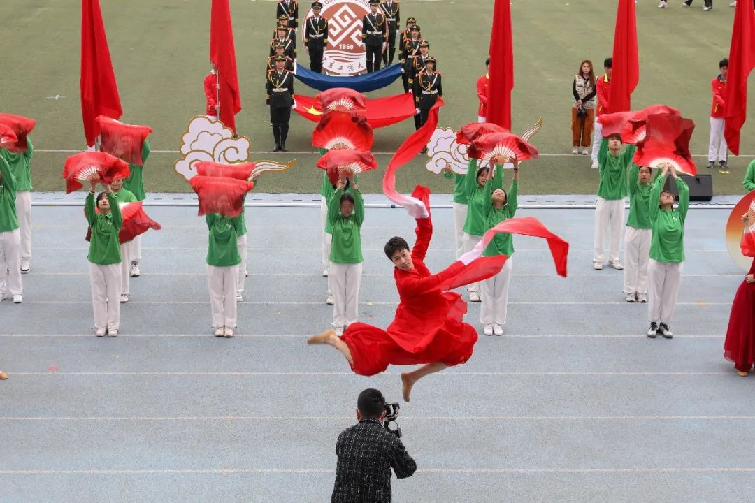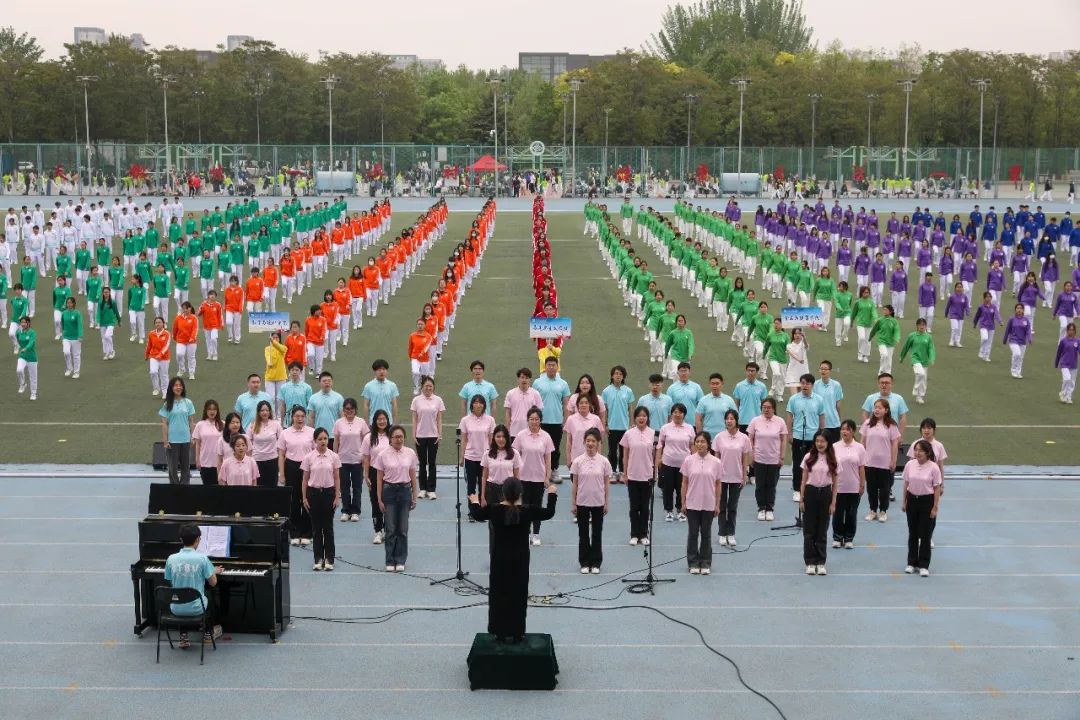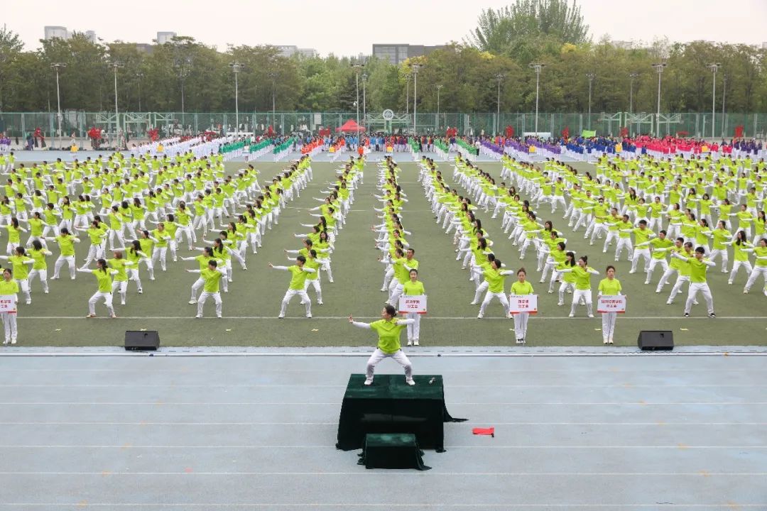 1000余名教職工帶來八段錦表演,教職工們身著綠色上衣,昂首挺胸、整齊劃一,展現了學校教職工奮進新征程的昂揚姿態。