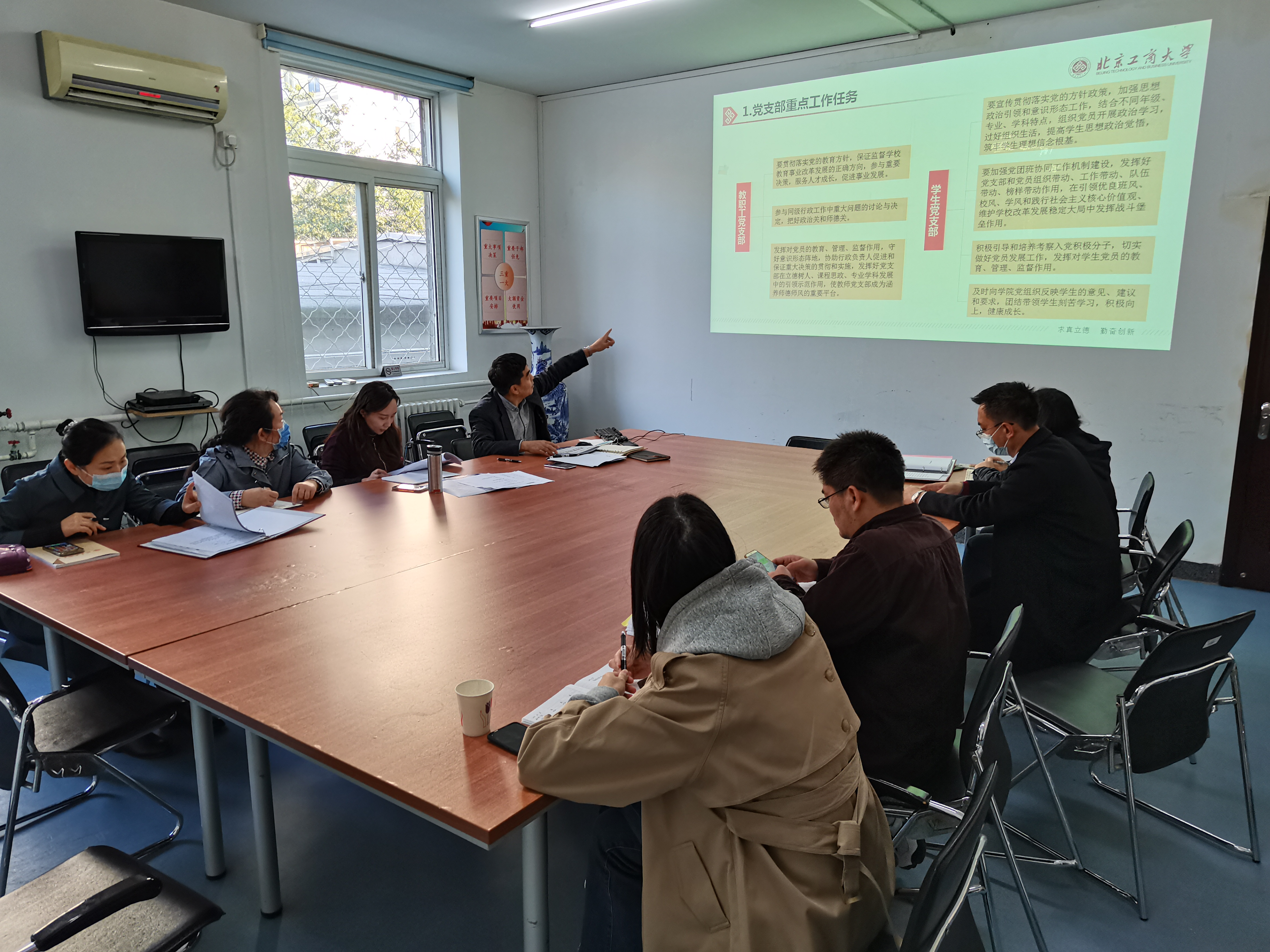 10月13日,學校黨委在主校區召開基層黨支部規范化建設專題會議,并為全校各黨支部制作印發了《北京工商大學基層黨支部規范化建設指導手冊》。會后,全校二級黨委、黨總支以黨組織委員(擴大)會、黨支部書記例會、書記講黨課等不同方式,相繼舉辦本單位基層黨支部規范化建設培訓,面向廣大師生黨支部書記、委員、《黨支部工作手冊》記錄同志深入宣講黨支部建設規范、工作要求和操作指南,把專題會議精神傳達落實到位。