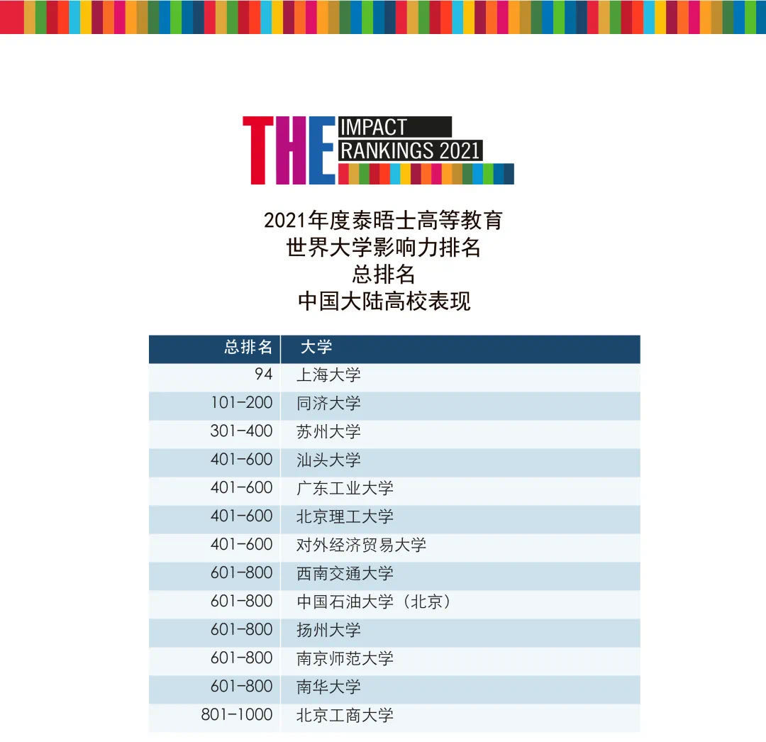 4月21日,泰晤士高等教育(THE)發布了2021年世界大學影響力排名。本次排名中,共有北京工商大學同上海大學、同濟大學、蘇州大學等19所中國大陸高校上榜。我校分別上榜總排名和3個SDG單項排名。