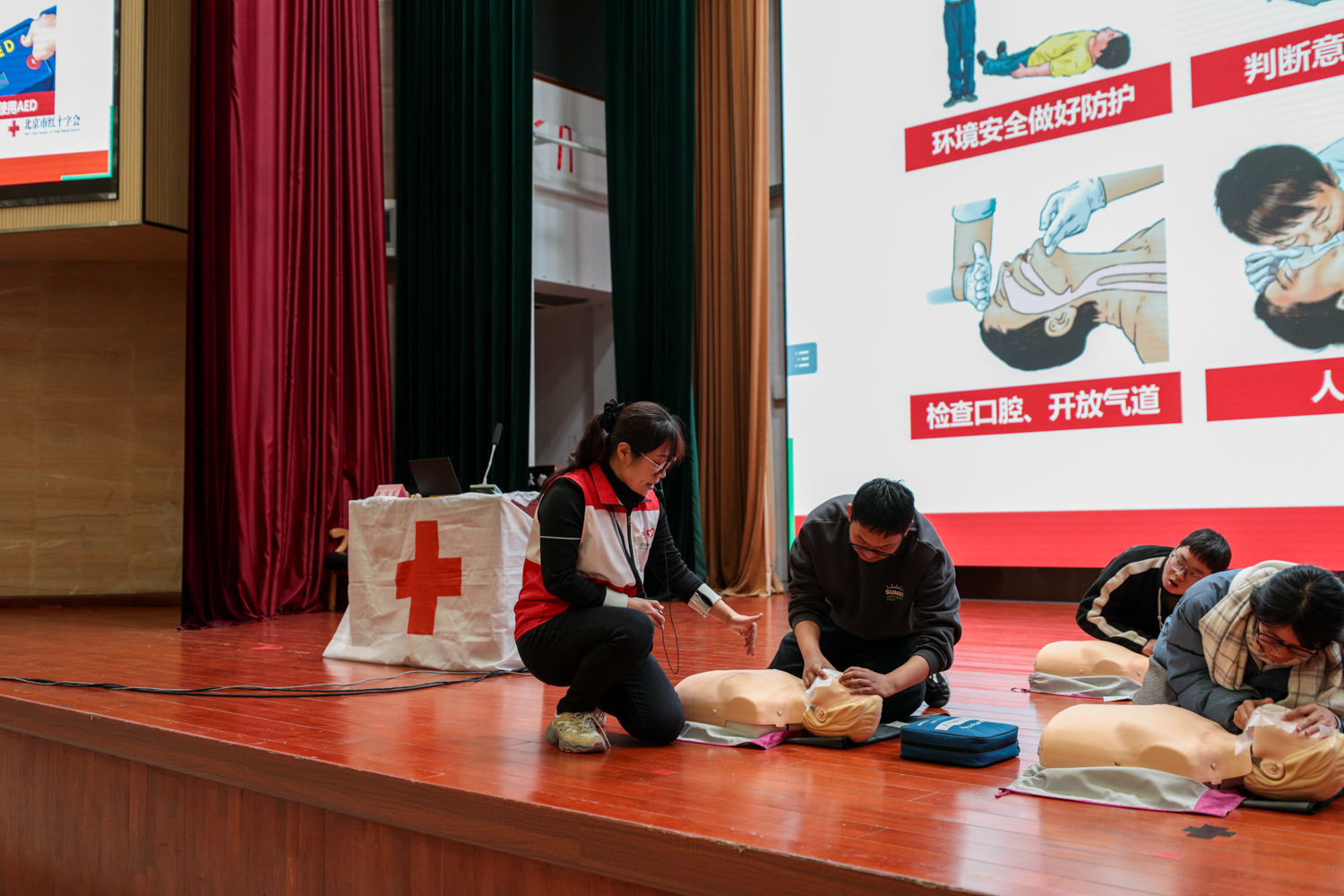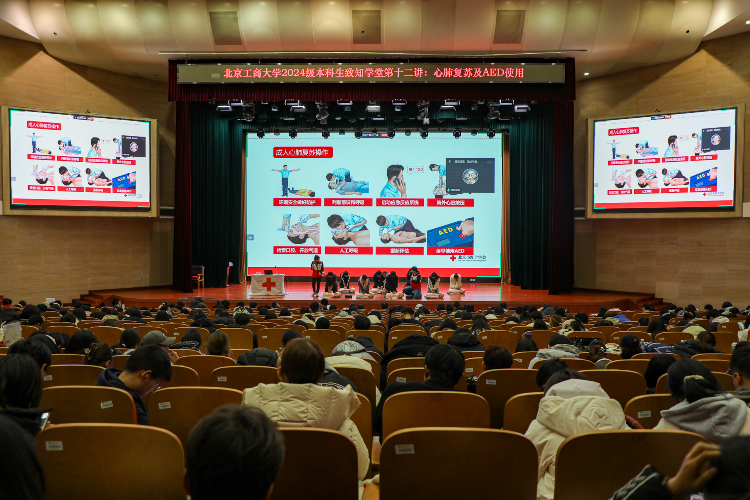 11月26日,北京工商大學良鄉主校區開展2024致知學堂系列講座第十二講:心肺復蘇及AED使用。原解放軍三甲醫院護士長、現北京市紅十字會應急救護培訓講師、心理咨詢師、健康管理師張海英開展“守護校園安全,紅十字‘救’在身邊”為題的講座,帶領同學們深入學習急救的各種方法,了解心肺復蘇在現實生活中的運用,深化同學們對“紅十字會的認識。