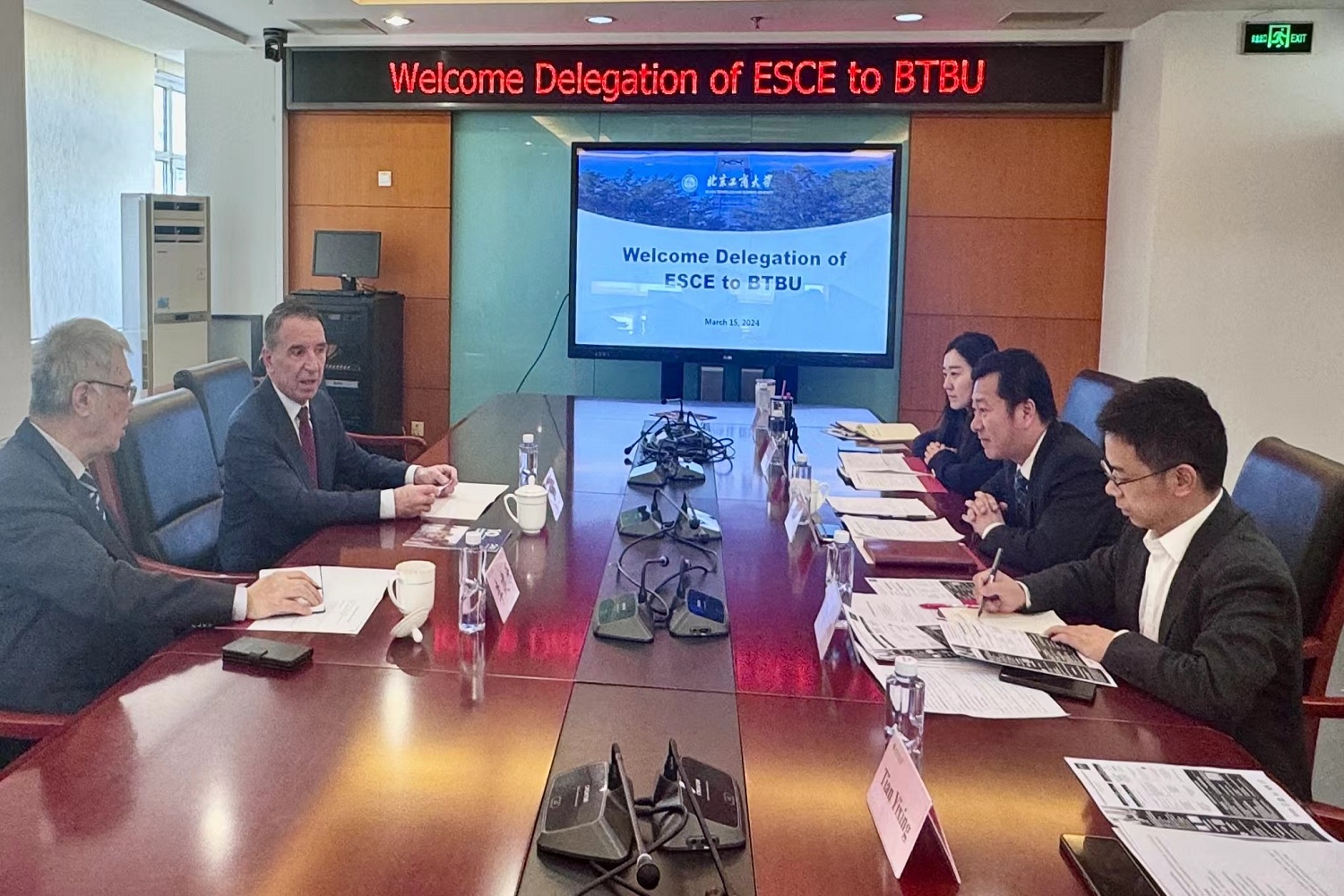 3月15日上午,法國巴黎高等對外貿易學院校長克里斯托夫·布瓦索(Boisseau Christophe)一行訪問我校。學校黨委常委、副校長劉敏華在阜成路校區會見了代表團。