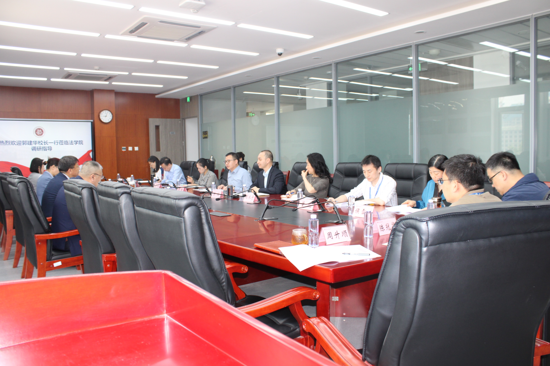 4月26日,學校黨委副書記、校長郭建華帶隊到法學院調研指導,聽取法學院綜合改革工作情況匯報,與學院領導班子成員、系主任及教師代表座談交流。黨政辦公室主任王曉華、科學研究院人文社科處處長孫永波和黨政辦公室副主任張揚陪同調研。座談會由法學院黨委書記胥陽主持。