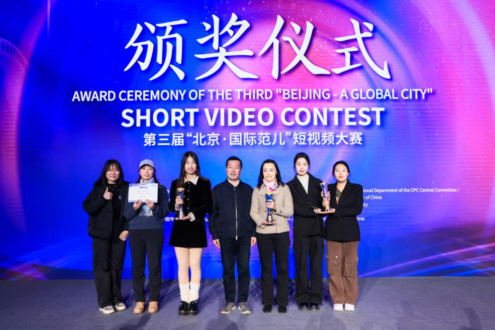 12月18日晚,由北京市人民政府外事辦公室主辦、中央廣播電視總臺國際在線承辦的第三屆“北京·國際范兒”短視頻大賽頒獎儀式在京舉辦。我校學生獲得2項二等獎、1項三等獎、4項優秀獎,語言與傳播學院獲得大賽組織獎。我校黨委常委、副校長劉敏華教授蒞臨現場,并為獲獎者們進行頒獎。我校語言與傳播學院院長王擎教授作為評委參加本次大賽的評選活動。