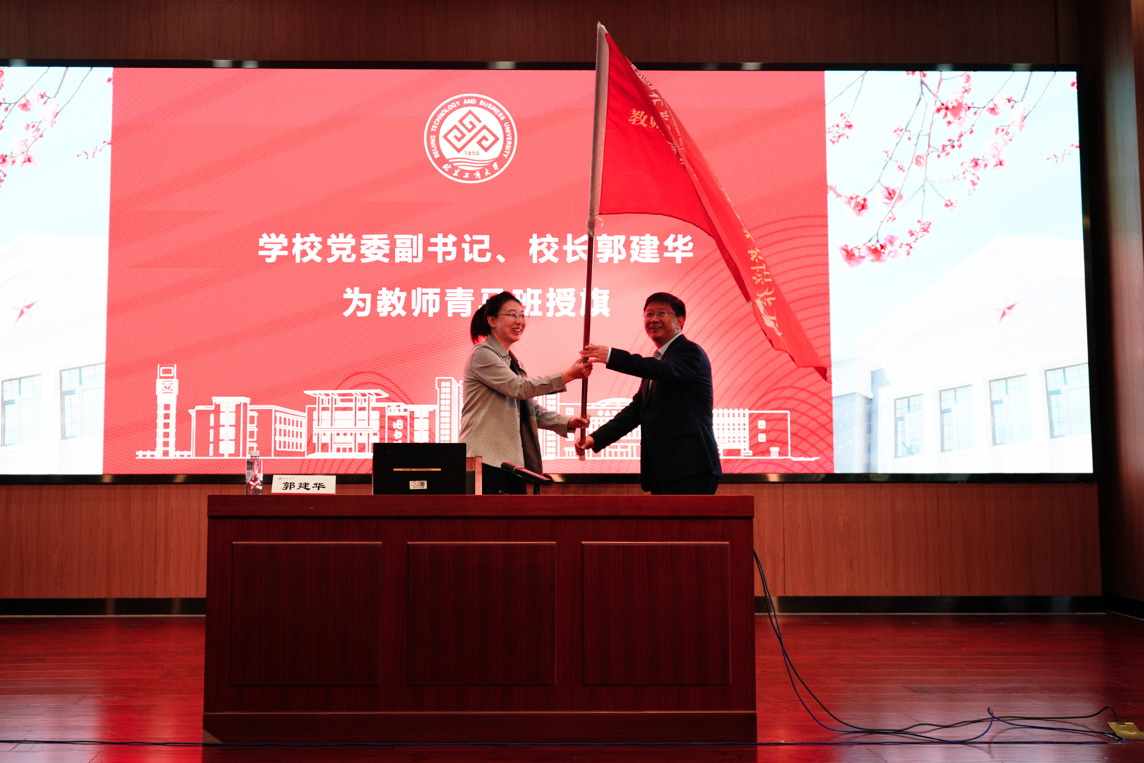 郭建華為教師青馬班授旗。他希望教師青馬班學員堅持學思踐悟有機統(tǒng)一,聯(lián)系學校高水平研究型大學發(fā)展實際,聯(lián)系各自工作崗位實際,將學習成效轉化為加快推進高水平研究型大學的實干擔當,譜寫新時代首都高質量發(fā)展的北工商新篇章。