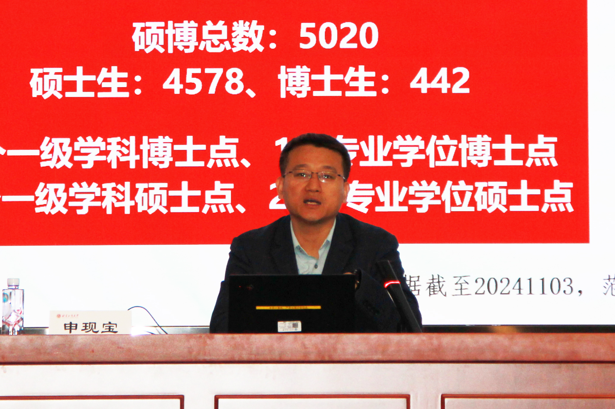 郭建華作“教育家精神”專題輔導報告。他從歷史與現(xiàn)狀、責任與使命、寄語與期望三個方面深刻回顧了學校的悠久歷史和發(fā)展軌跡,全面展示了學校的核心優(yōu)勢和顯著成果。同時,他向新入職教職工表達了深厚的期望。他強調,要堅定圍繞加快創(chuàng)建“雙一流”學科、全面推進高水平研究型大學建設的奮斗目標,按照“堅持一條主線、落實兩校區(qū)發(fā)展規(guī)劃、加快推進三大轉型、穩(wěn)步推動四個學部改革”的發(fā)展思路,把握機遇、凝心聚力,共同為學校的高質量、內涵式發(fā)展貢獻力量。他指出,要明確教師的責任和使命,深刻理解北工商的歷史傳統(tǒng),立志成為“躬耕教壇、強國有我”的典范,踐行“愛國、愛教、愛生”以及“身教、能教、善教”的教育理念。最后,他鼓勵青年教師珍惜青春年華,充分享受學習的樂趣,揮灑創(chuàng)造激情,切實擔負起對國家、對社會的使命和責任,大力弘揚教育家精神,爭做學生為學、為事、為人的大先生。