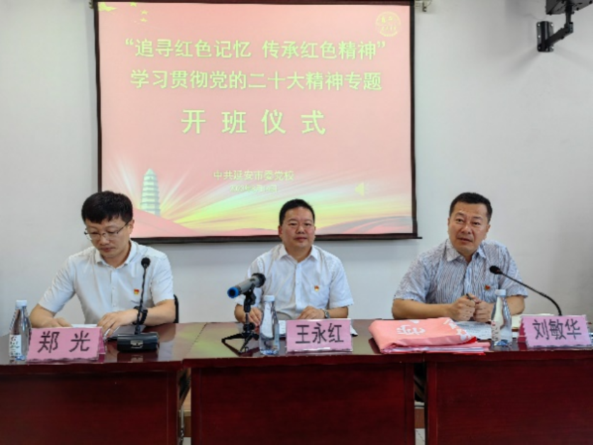 8月14日上午,培訓班開班儀式在延安市委黨校舉行。延安市委黨校副校長王永紅致辭,重點介紹了延安的政治歷史地位、經濟社會發展情況,希望學員充分利用本次培訓機會,認真學習領悟“延安精神”的內涵,用延安之行所學所悟指導工作實踐,不斷提升凝聚力、組織力、執行力,為推進中國式現代化建設貢獻力量。劉敏華作動員講話,他指出,偉大延安精神對教育引導黨員干部加強黨性修養和黨性鍛煉具有不可替代的重要作用,大家要結合正在開展的主題教育,進一步學深悟透習近平總書記關于弘揚延安精神的重要論述,堅持不懈從延安精神中汲取力量,凝心聚力譜寫學校高質量發展新篇章。他結合以毛澤東同志為核心的黨的第一代領導集體在延安走過十三年歷程對參訓學員提出四點要求,一是堅持以學鑄魂,堅定正確的政治方向,不斷提高政治判斷力、政治領悟力、政治執行力;二是堅持以學增智,堅定理想信念宗旨,準確理解把握習近平新時代中國特色社會主義思想的世界觀、方法論;三是以學正風,錘煉品格涵養作風,克服官僚主義形式主義;四是以學促干,奮力擔當履職作為,以延安精神為引領推動學校高質量發展。