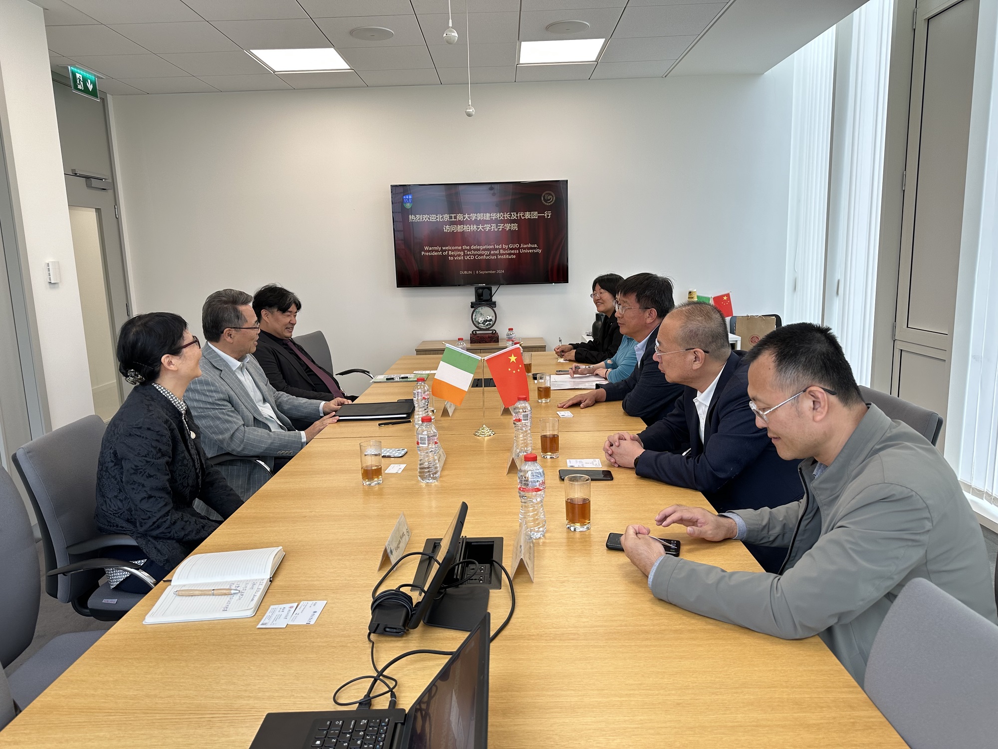 9月8日至9月10日,代表團(tuán)訪問了愛爾蘭考克大學(xué)和愛爾蘭都柏林大學(xué)。在愛爾蘭考克大學(xué)訪問期間,郭建華校長與愛爾蘭考克大學(xué)校長約翰·奧哈洛倫(John O’Halloran)進(jìn)行會談。雙方介紹了兩校近年來的發(fā)展概況和未來發(fā)展方向,并表示兩校合作近20年來建立了深厚友誼,合作基礎(chǔ)非常牢固,希望未來能夠在此基礎(chǔ)上,進(jìn)一步深化兩校合作,擴(kuò)大雙方在其他專業(yè)和領(lǐng)域的交流合作,持續(xù)鞏固和煥發(fā)兩校中外合作辦學(xué)項目的生命力,共同謀劃合作辦學(xué)項目轉(zhuǎn)型升級,不斷促進(jìn)兩校全面戰(zhàn)略融合,協(xié)同發(fā)展。考克大學(xué)主管國際事務(wù)副校長厄蘇拉·卡爾克里(Ursula Kilkelly)陪同參加了會談。