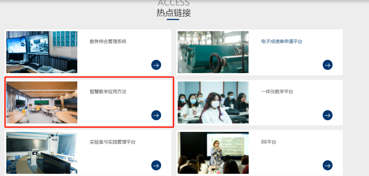 如何查看智慧教室使用手冊:1 打開教室分類,找到使用手冊,或點擊首頁“智慧教室使用說明”大圖中的“點擊查看”按鈕。