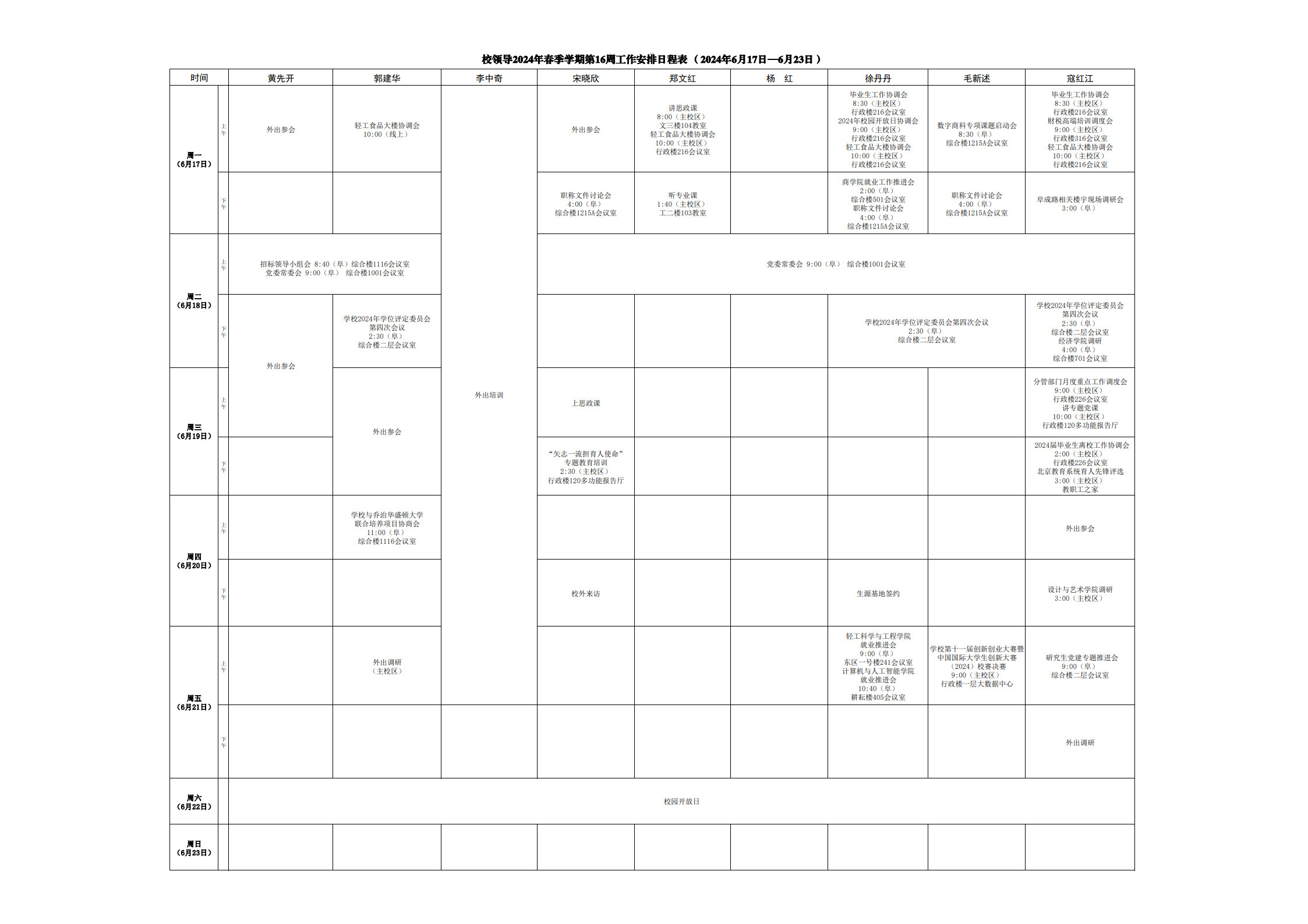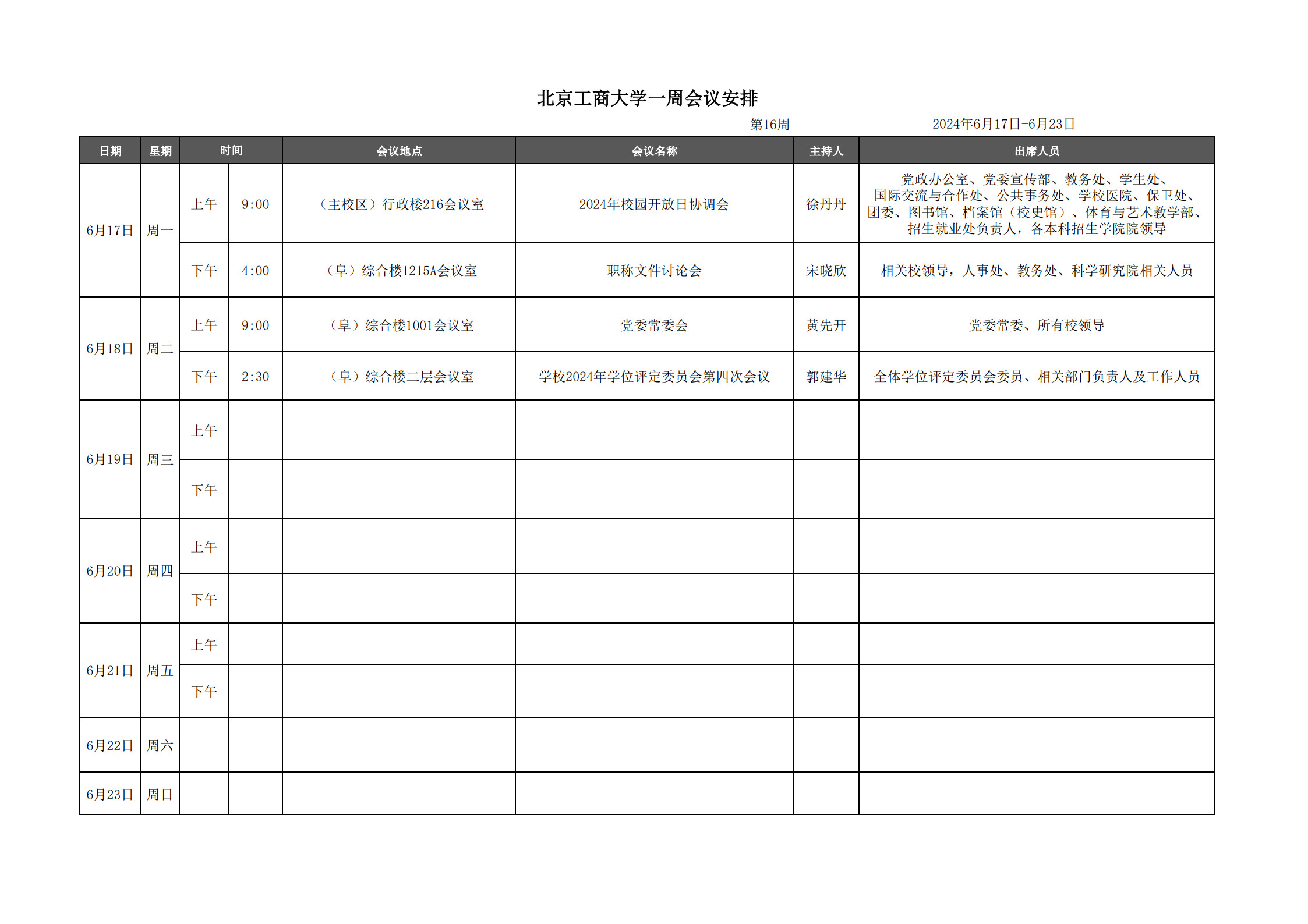 第16周會議安排