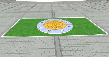 設(shè)計說明:景觀地標定位在求知廣場中軸線上,設(shè)計為總直徑4.6米,中心為直徑3米的銅鑄學(xué)校?;眨饷姘鼑蝗?span lang="EN-US">0.8米寬12mm厚鋼化安全玻璃,安全玻璃從銅LOGO向現(xiàn)狀地形找坡2%,銅鑄?;崭叱霈F(xiàn)狀地面160mm。景觀地標為正圓形,安全玻璃平均分為八塊,每塊玻璃中心處做直徑300mm的藏地?zé)簟?/span>