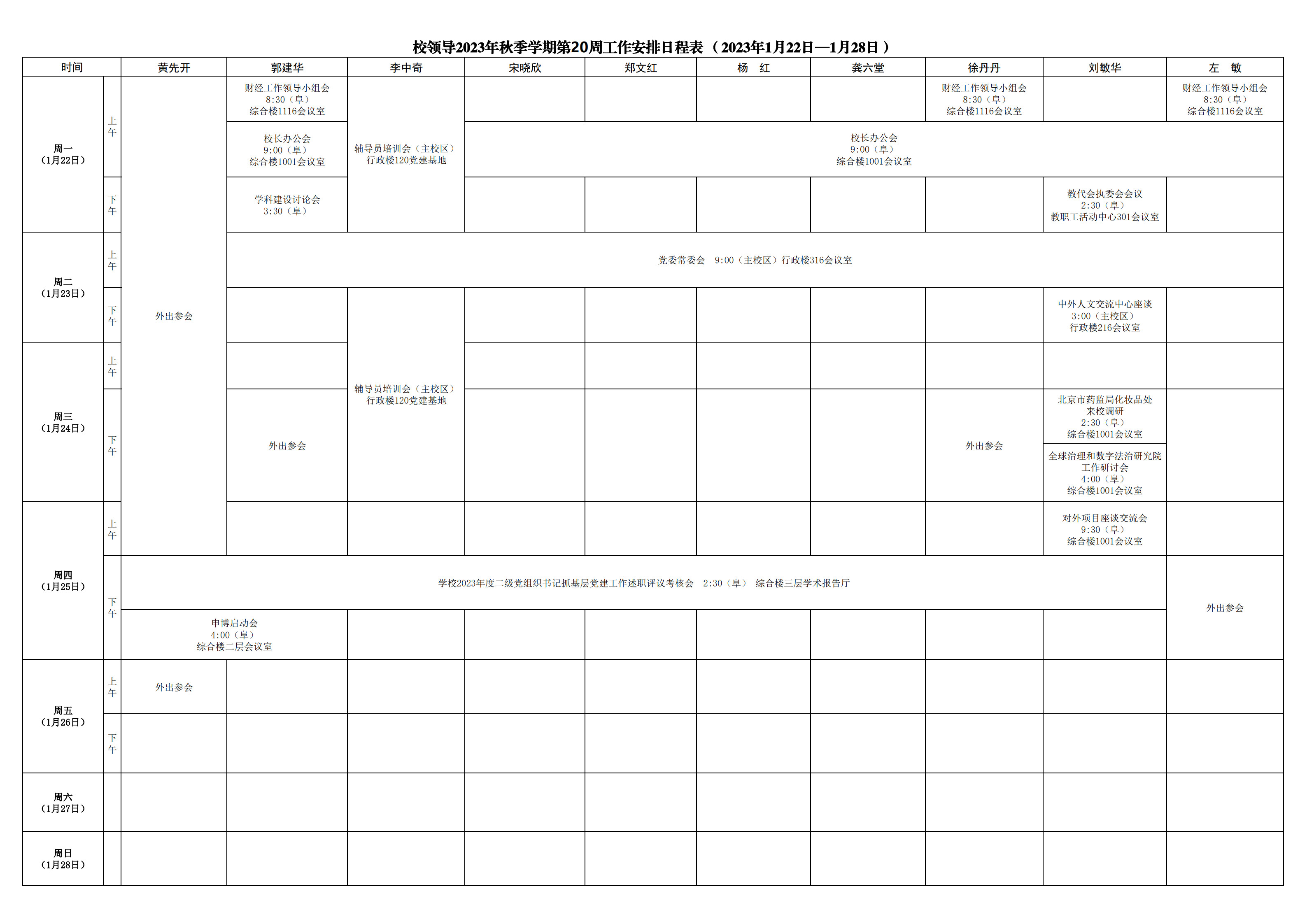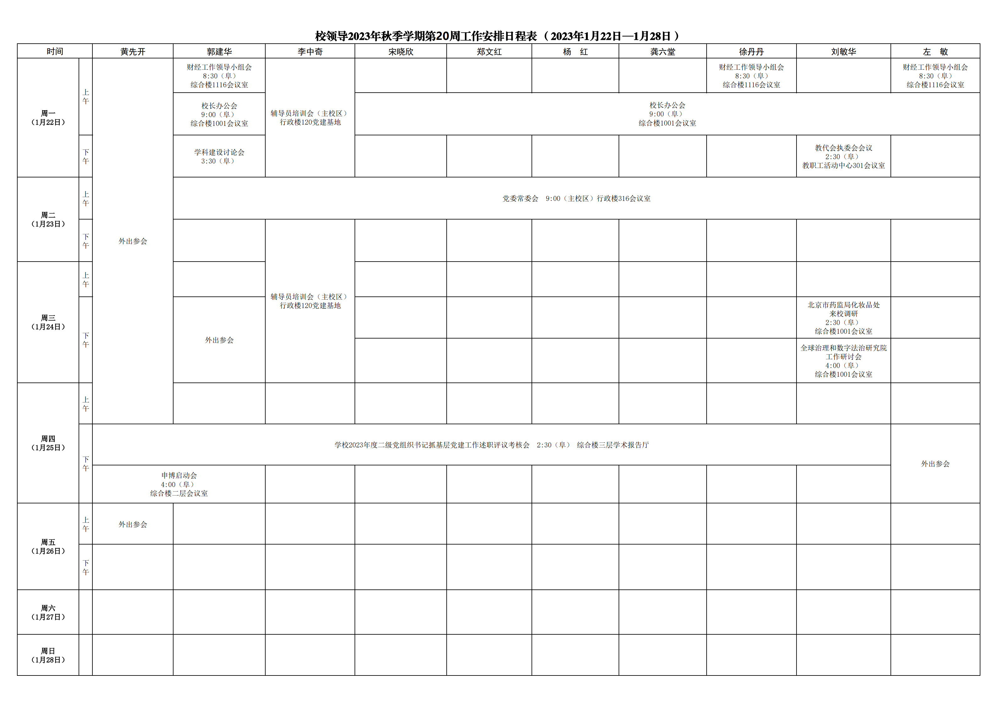 第20周會(huì)議安排