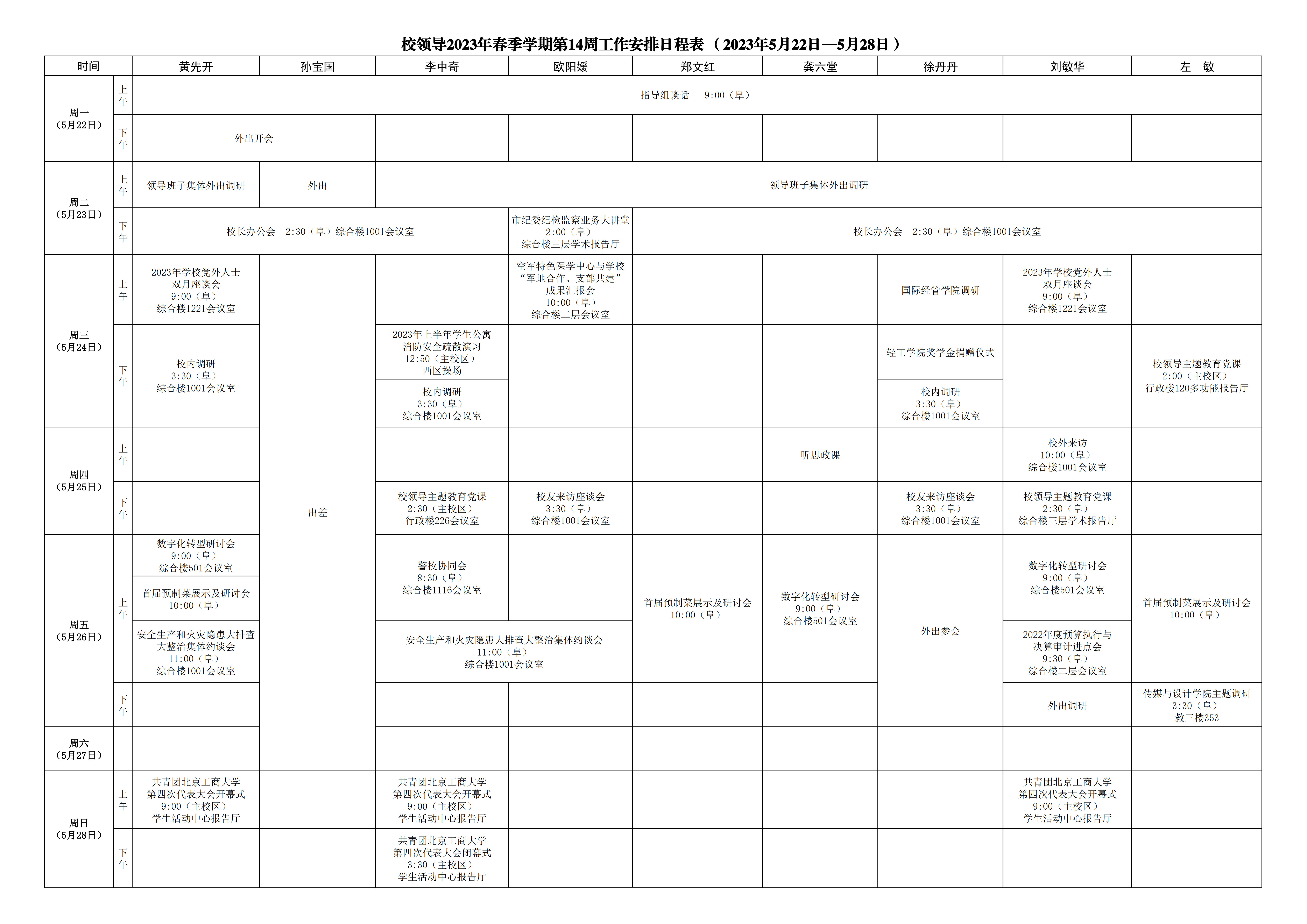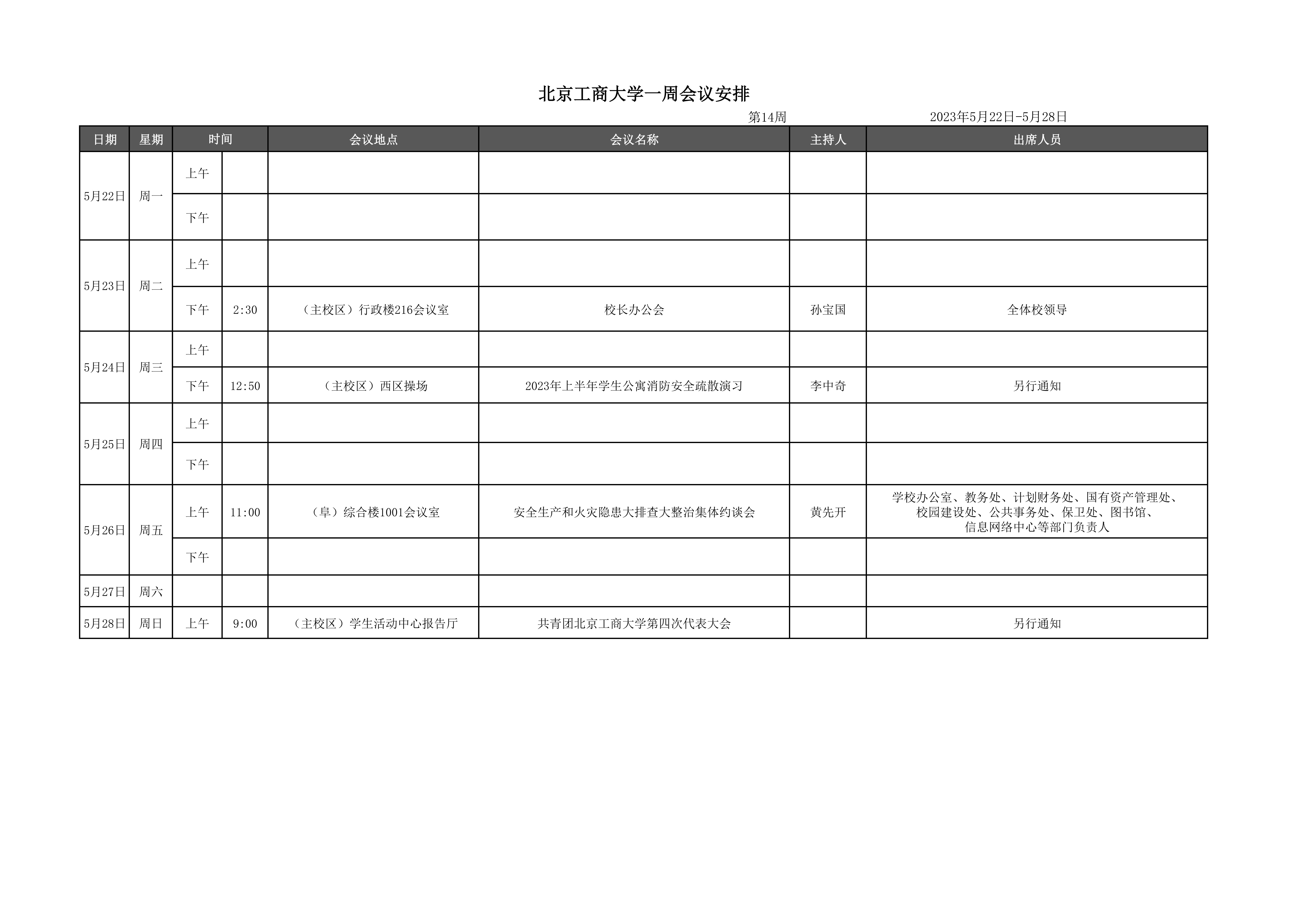 第14周會議安排