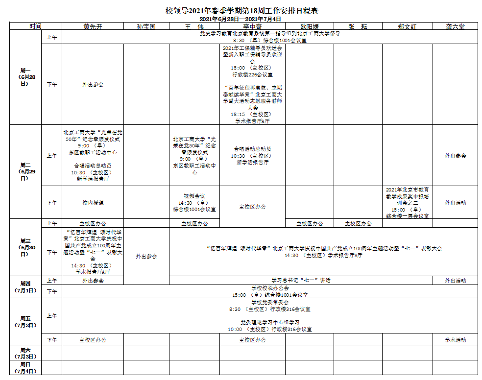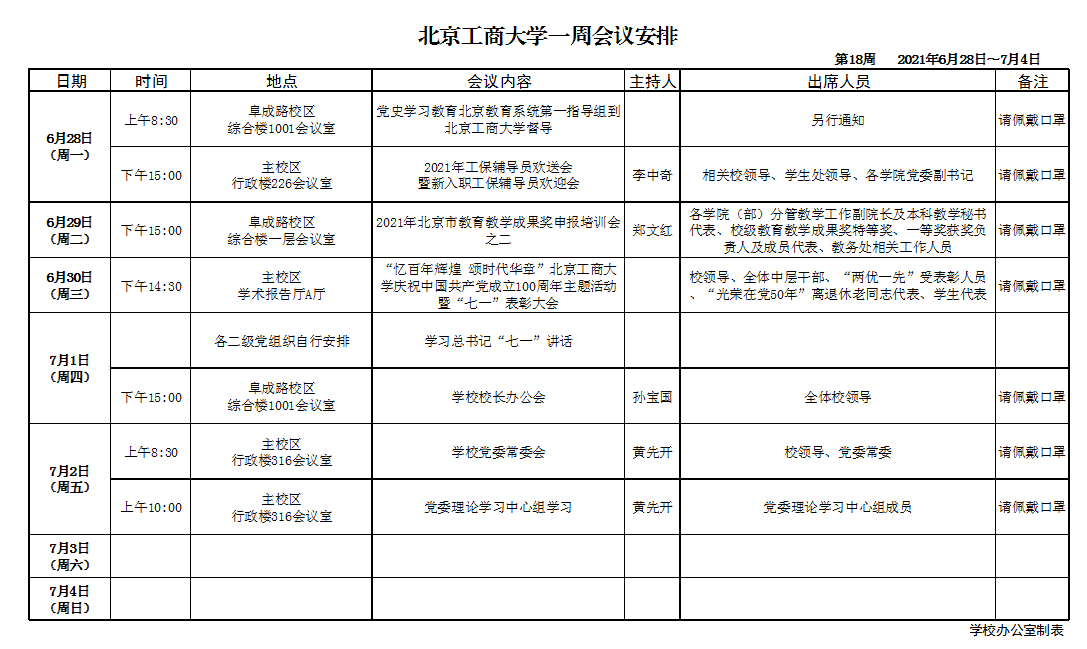 第18周會議安排