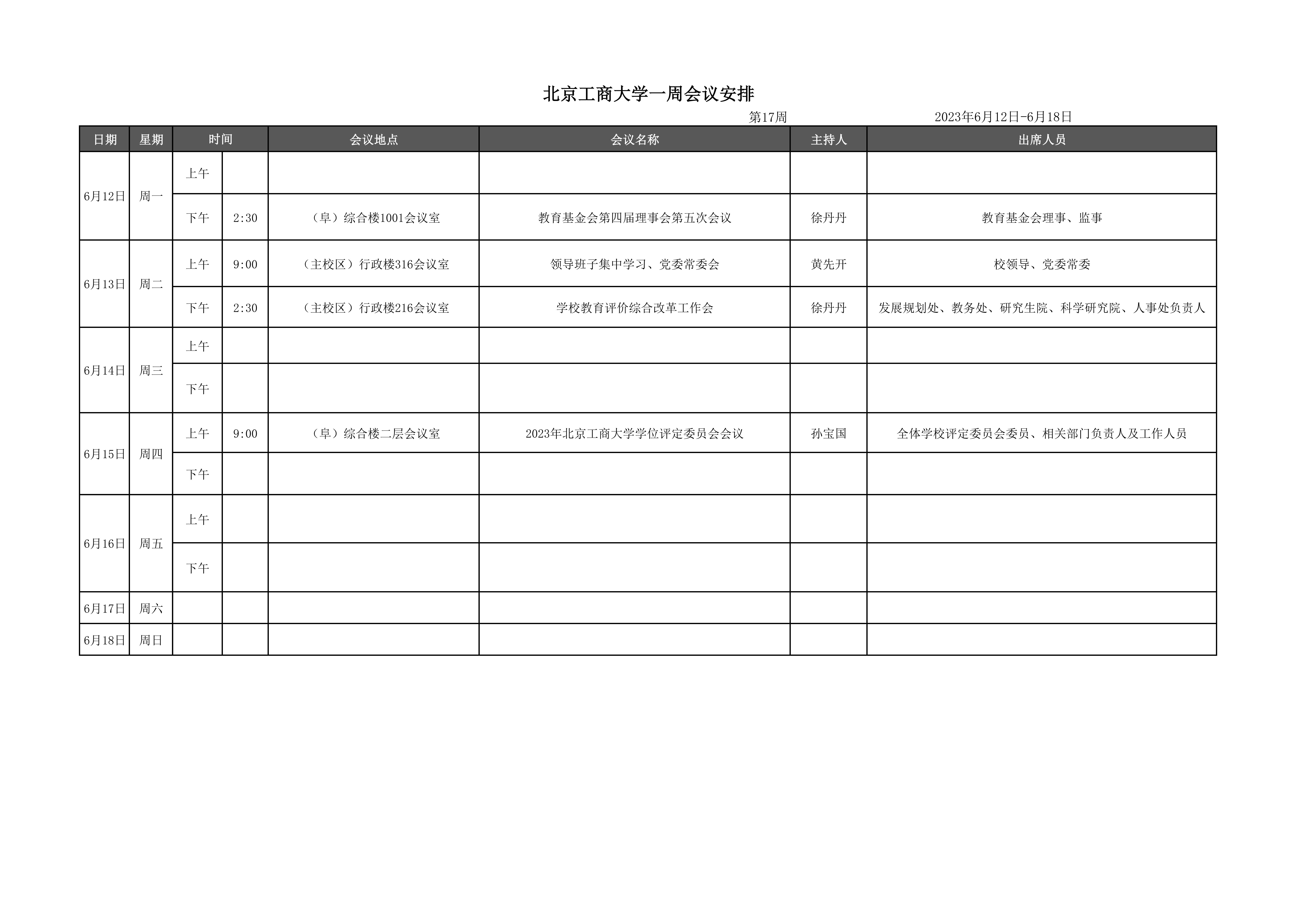 第17周會(huì)議安排