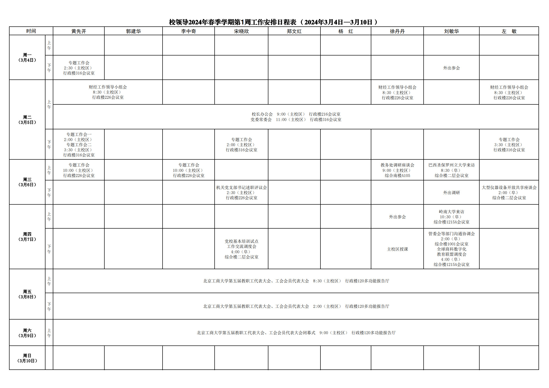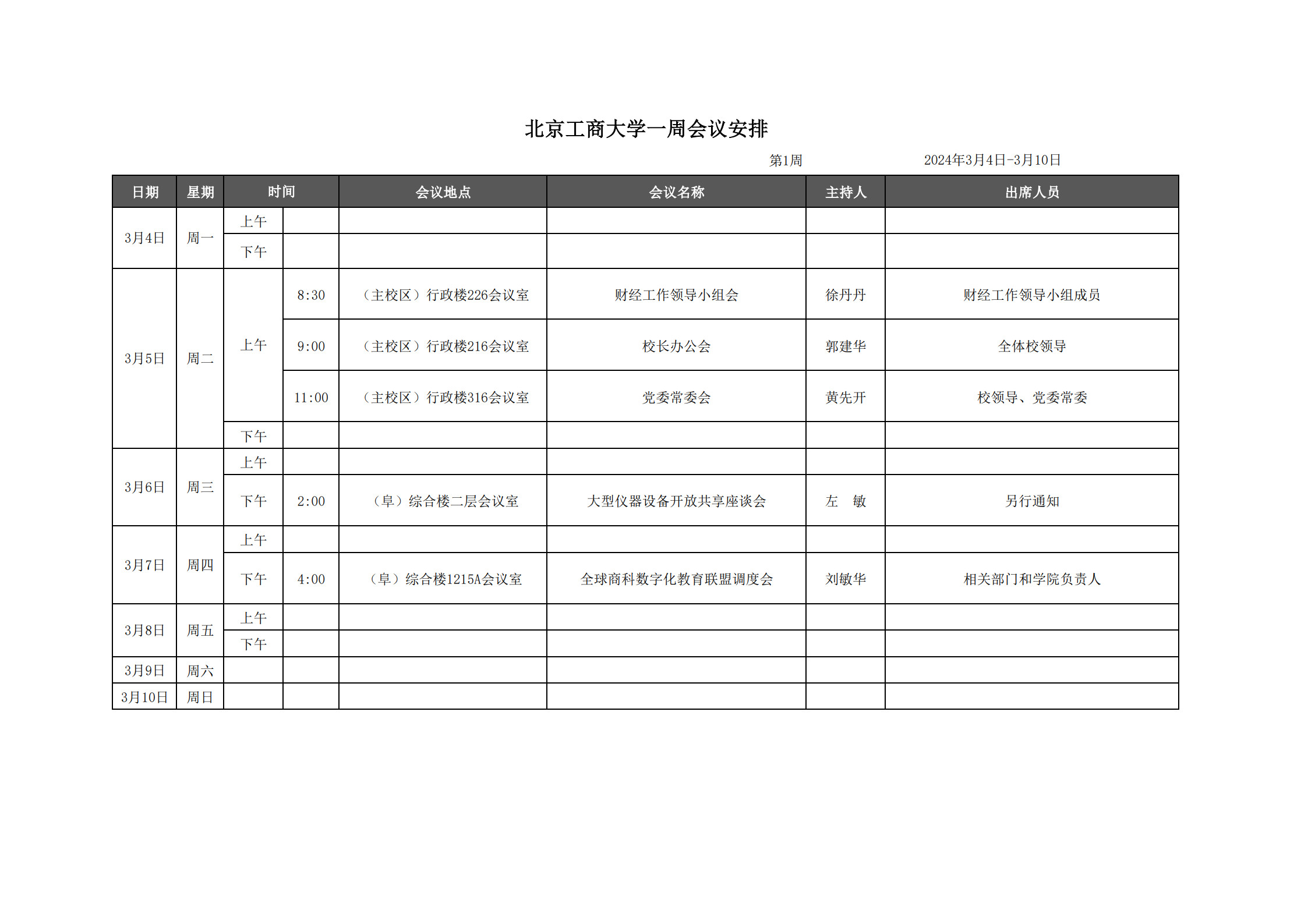 第1周會議安排