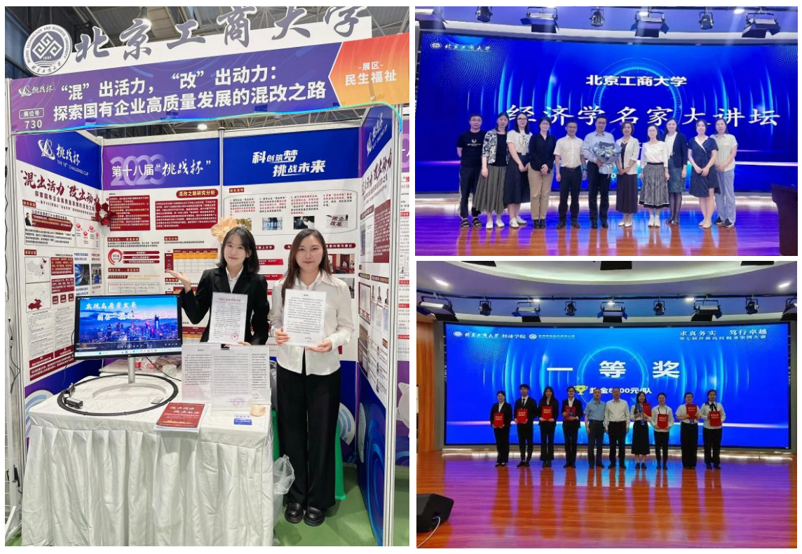 學院落實學校“三全育人”方案,堅持學生主體地位、堅持課堂育人主渠道,落實“領導班子+輔導員+班主任+專業教師+學生骨干+校外導師”六位一體的學風建設合力。實施“大一新生適應性教育、大二專業知識夯實教育、大三綜合能力提升教育、大四就業深造促進教育”的階梯式學風建設體系,推動形成學風建設長效機制,為培養高質量的應用型人才保駕護航。注重學生的全面發展,通過學術講座、文化活動、社會實踐等多種形式,豐富課余生活,提升學生的綜合素質。2023年度,經濟學院在多項比賽創學校最好成績,如“挑戰杯”全國終審決賽獲主賽道二等獎1項、紅色專項賽道二等獎1項;“青創北京”2023“挑戰杯”首都大學生課外學術科技作品特等獎3項、一等獎12項、二等獎19項、三等獎30項等。