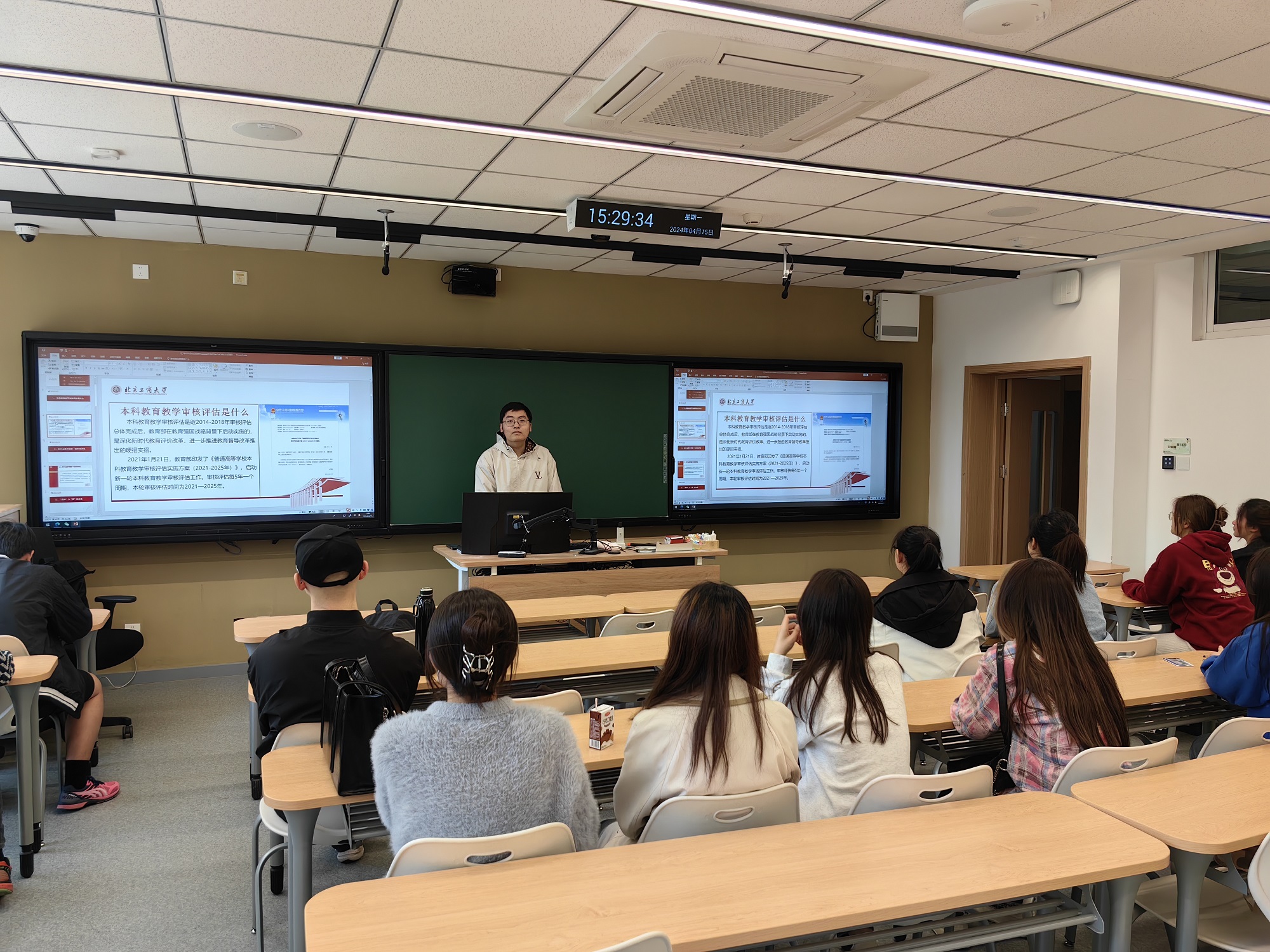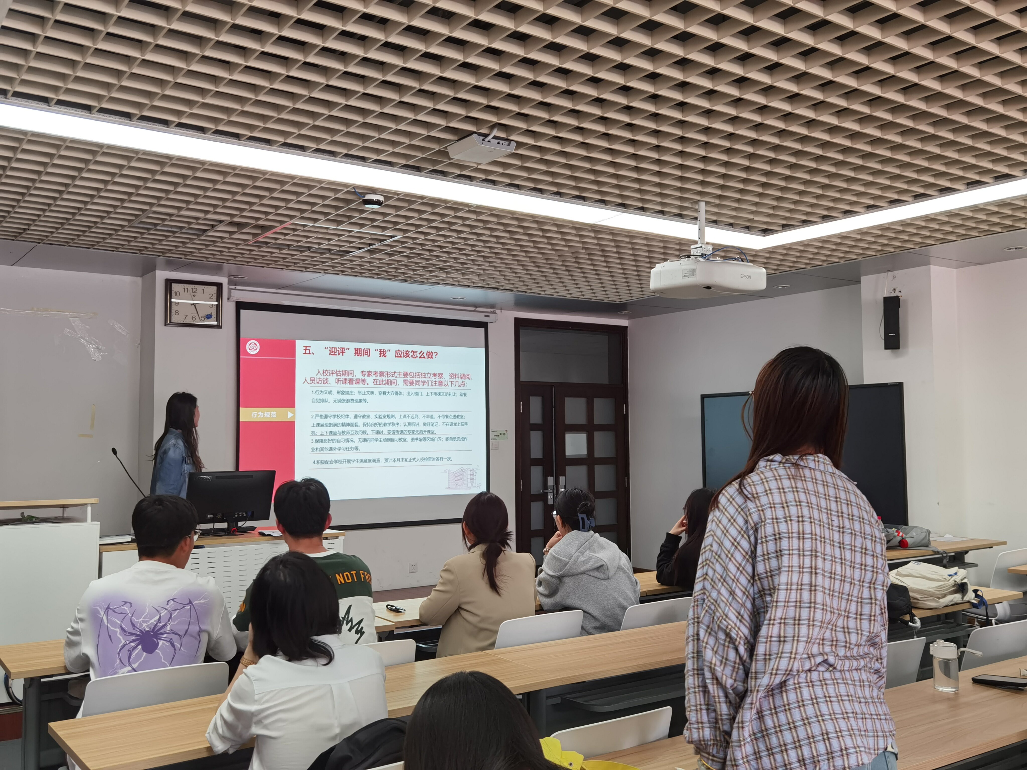 該班會由各學院具體組織實施,各班班主任圍繞“新一輪本科教育教學審核評估是什么,‘迎評’與‘我’的關系,‘我’為‘迎評’做些什么,怎么做”四個方面,為學生進行詳細解讀,帶領學生共同學習迎評促建應知應會,了解評估要求,深化對本科教育教學審核評估的重要性認識。此外,在班會中,同學們也紛紛表示,將從自身做起,嚴格遵守學校規章制度,認真學習迎評促建知識,專注課程學習,養成良好的學習行為習慣,為學校迎檢工作貢獻力量。