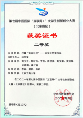 在課程設置上,增加了與科研及產業前沿相關課程,有效的支持了創新創業系列課程的開展,使學生獲得了豐富的創新實踐體驗,極大的激發了學生的求學熱情,學生積極參與導師的科研項目,參與科研實驗,發表學術論文多篇,并在各類型學科相關比賽中斬獲佳績,其中包括“北京市大學生生物學競賽”、“全國大學生化學實驗創新設計大賽”、“全國大學生化妝品創新大賽”等,獲獎數量近30項,一等獎5項。近三年來,化妝品系教師共指導本科生完成創新創業訓練項目13項(其中北京市級7項,國家級1項),指導本科生發表學術論文10余篇。其中,化妝品21級本科生侯惠溶在學業導師趙風年老師指導下,以第一作者身份在分析化學領域排名第一的中科院一區TOP期刊《TrAC Trends in Analytical Chemistry》(IF13.1)上發表了綜述文章,實現了本科生在化妝品高水平論文的突破。