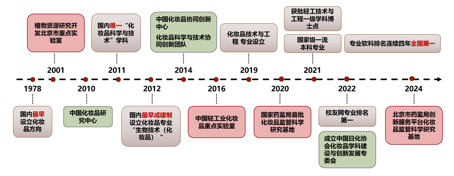 北京工商大學于2011年取得“化妝品科學與技術”碩士研究生授予權,是全國最早設立化妝品相關專業,并進行化妝品本科與碩士研究生成體系培養的高校之一,2020年度入選“國家級一流本科專業建設點”,2021-2024年軟科中國大學專業排名連續四年位居全國第一。